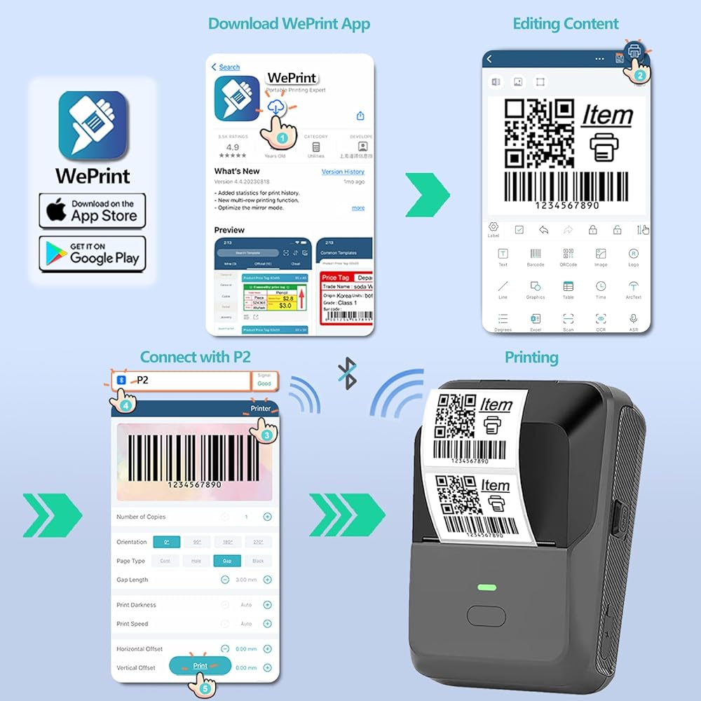 Easy to Use: Say goodbye to complicated setups and confusing interfaces! This thermal printer features a user-friendly design that ensures anyone can operate it with ease. Simply connect it to your smartphone via Bluetooth, the smart multi-functional app meet your different needs.