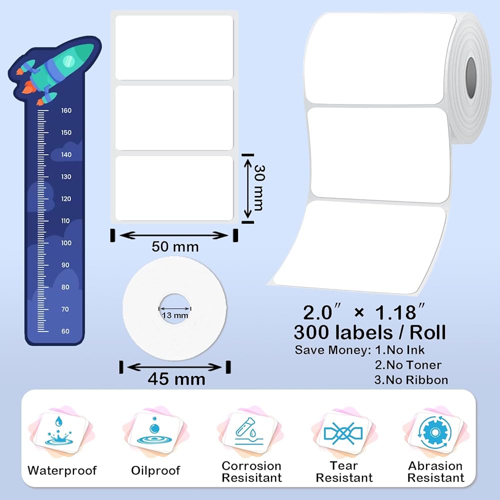 Efficient Printing Technology: This label maker machine with tape utilizes advanced thermal printing technology, no ink, no toner. The inkless and carbonless feature not only saves you money but also eliminates the mess traditional printing methods.