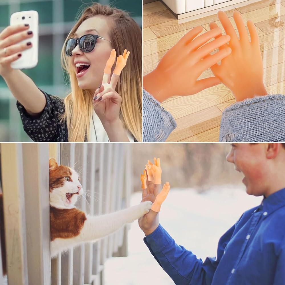 Little hands, big fun! Introducing our tiny finger hands, the perfect accessory for endless entertainment. These mini hands are designed to fit on your fingers, giving you the ability to create hilarious and adorable scenarios with just the flick of a wrist. Ideal for kids and adults alike, these hand finger puppets are sure to bring a smile to anyone's face. Whether you want to perform a silly puppet show, prank your friends, or simply add a touch of whimsy to your day, our tiny finger hands are the perfect addition to your toy collection. Made from durable and flexible materials, these small hands are built to last through hours of playtime without losing their shape or color.