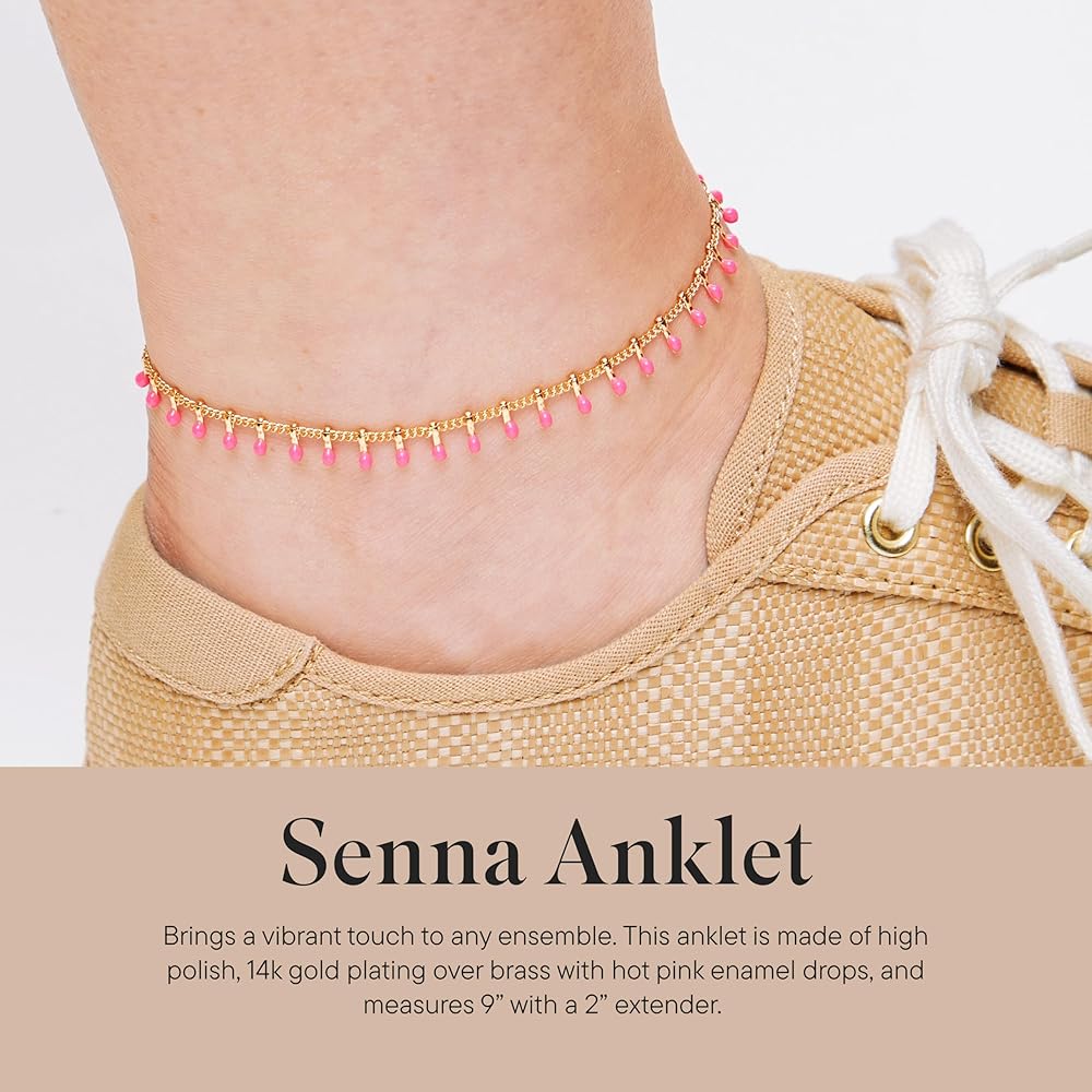 For the Free Spirit: Boho for the modern free spirit. The Senna anklet with pink enamel brings a vibrant touch to any ensemble