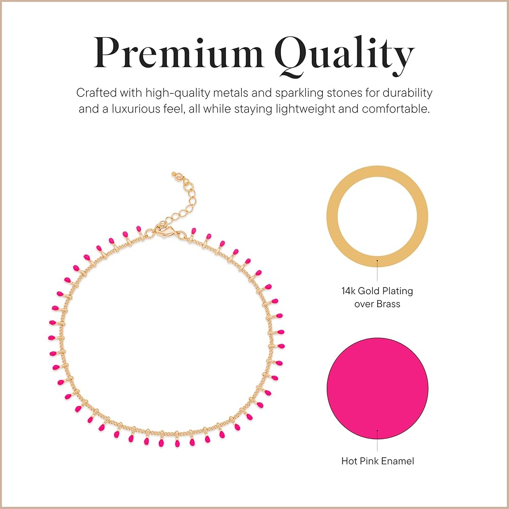 14k Gold Plated with Enamel: This gold anklet for women is made of high-polish 14k gold plating over brass with enamel drops
