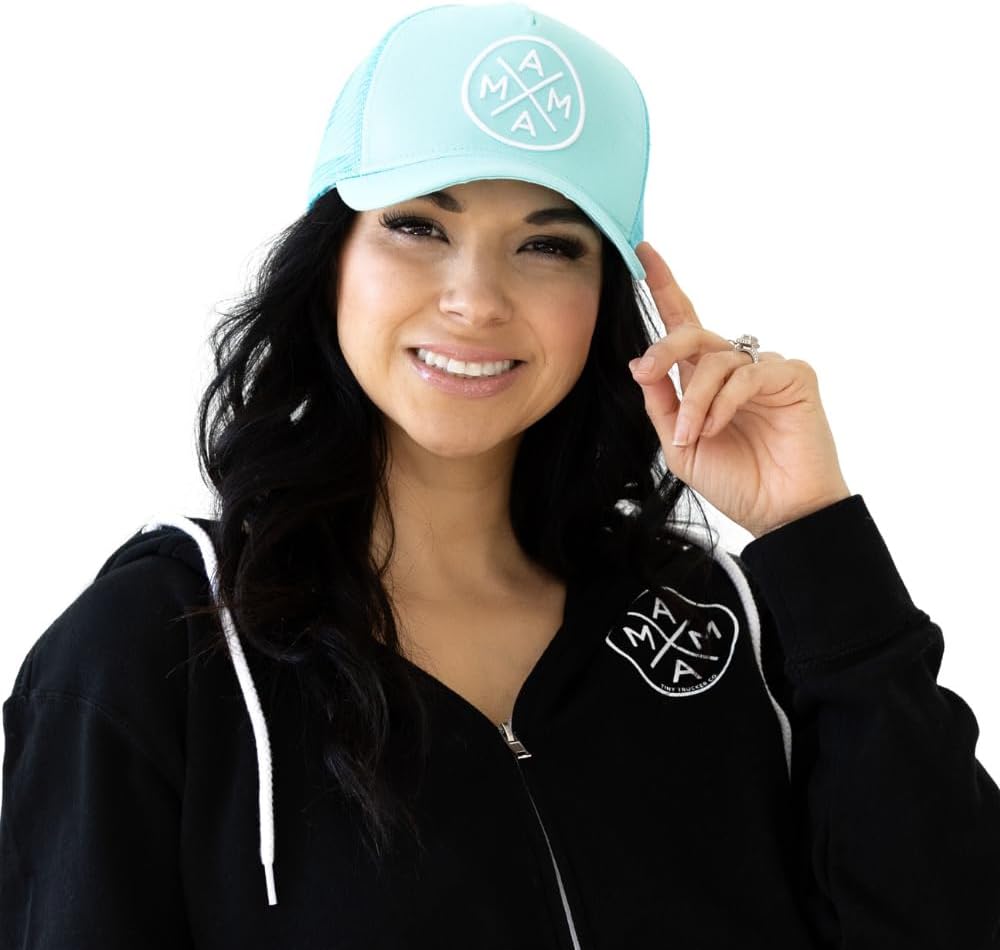 قبعة سائق الشاحنة TINY TRUCKER Co. قبعة سائق الشاحنة باللون الأبيض المطرز بشعار Mama X™ باللون الأخضر النعناعي، قبعة بيسبول شبكية خلفية قابلة للتعديل مقاس واحد يناسب الجميع - نعناعي