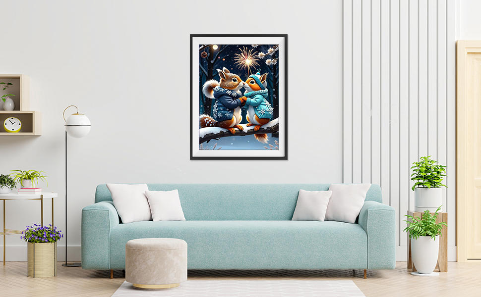 QENSPE Diamond Painting Kits for Adults,Full Drill Diamond Art Diamond Dots Paintings for Beginners,Squirrel Fireworks Round 5D DIY Arts and Crafts for Home Wall Decor 12x16inch