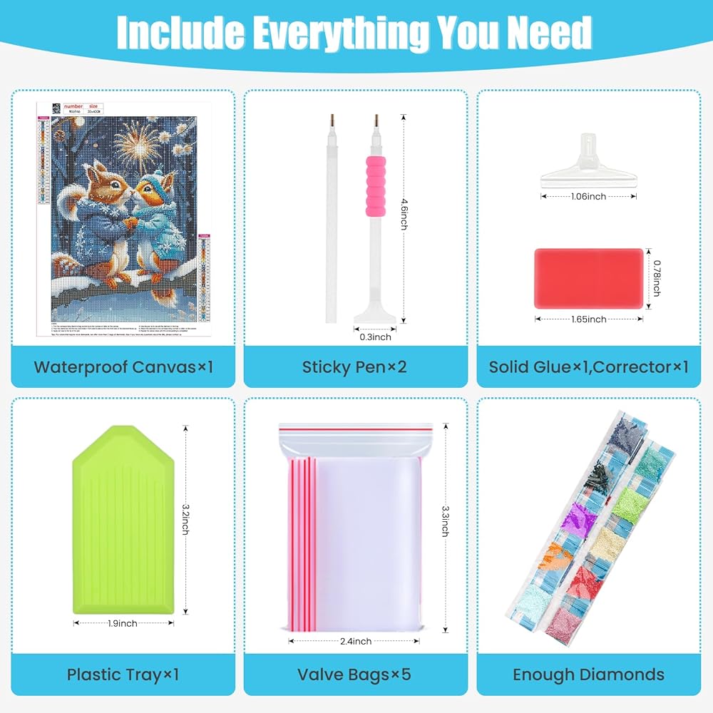 Contain All Tools - Diamond gem art painting kits contain all tools:1 high definition canvas,1 diamond tray,1 big wax,2 diamond pens,1 replaceable correction pen,5 ziplock bags and enought round diamonds, so you don't need to purchase any additional tools.