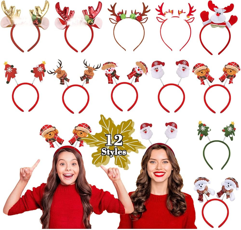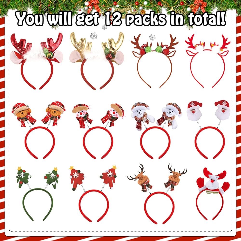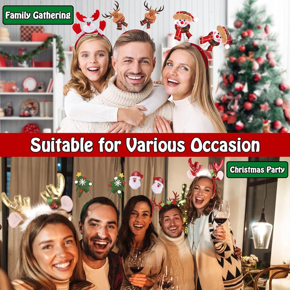 【ديكورات لطيفة لحفلات عيد الميلاد】تتضمن عصابة رأس عيد الميلاد المضحكة هذه 12 نمطًا مختلفًا تتضمن بعضها نمطين لطيفين متصلين بزنبرك معدني وسوف تتأرجح عندما