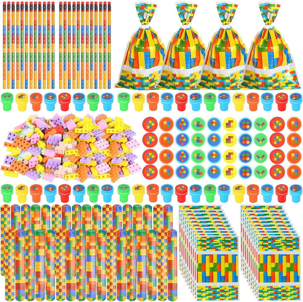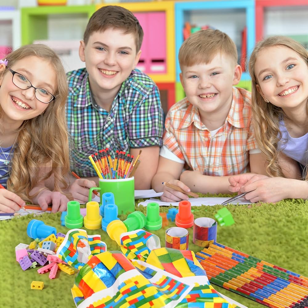 Kolewo4ever 320 قطعة بناء كتلة السائبة: بناء كتلة قلم رصاص ممحاة صفعة أساور طوابع علاج أكياس للفصول الدراسية هدية ألعاب جوائز مكافأة جوائز أحداث الكرنفال