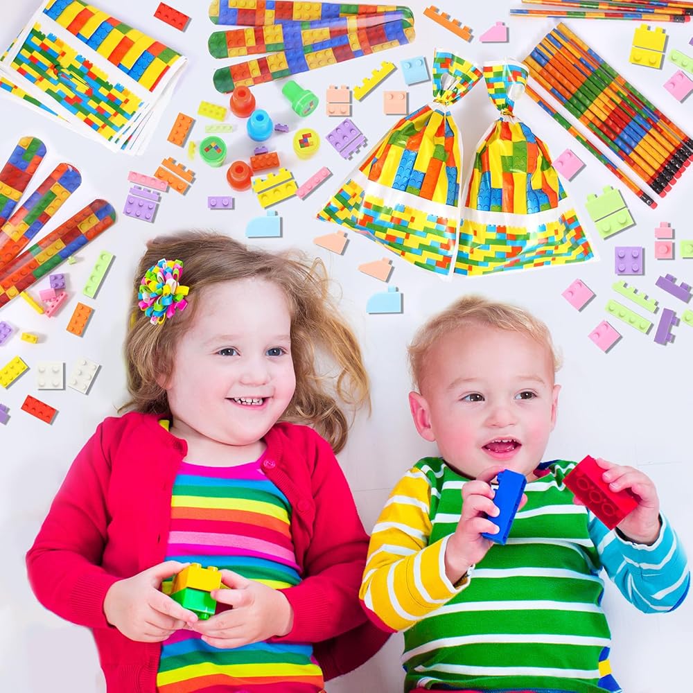 Building block design: our building block stationary set showcase an innovative aesthetic, with each Individual item designed with styles ranging from classic colors to building block themed prints,a good choice for party bags for girls and boys,which will give you more choose, add more fun to you in the festival and daily life