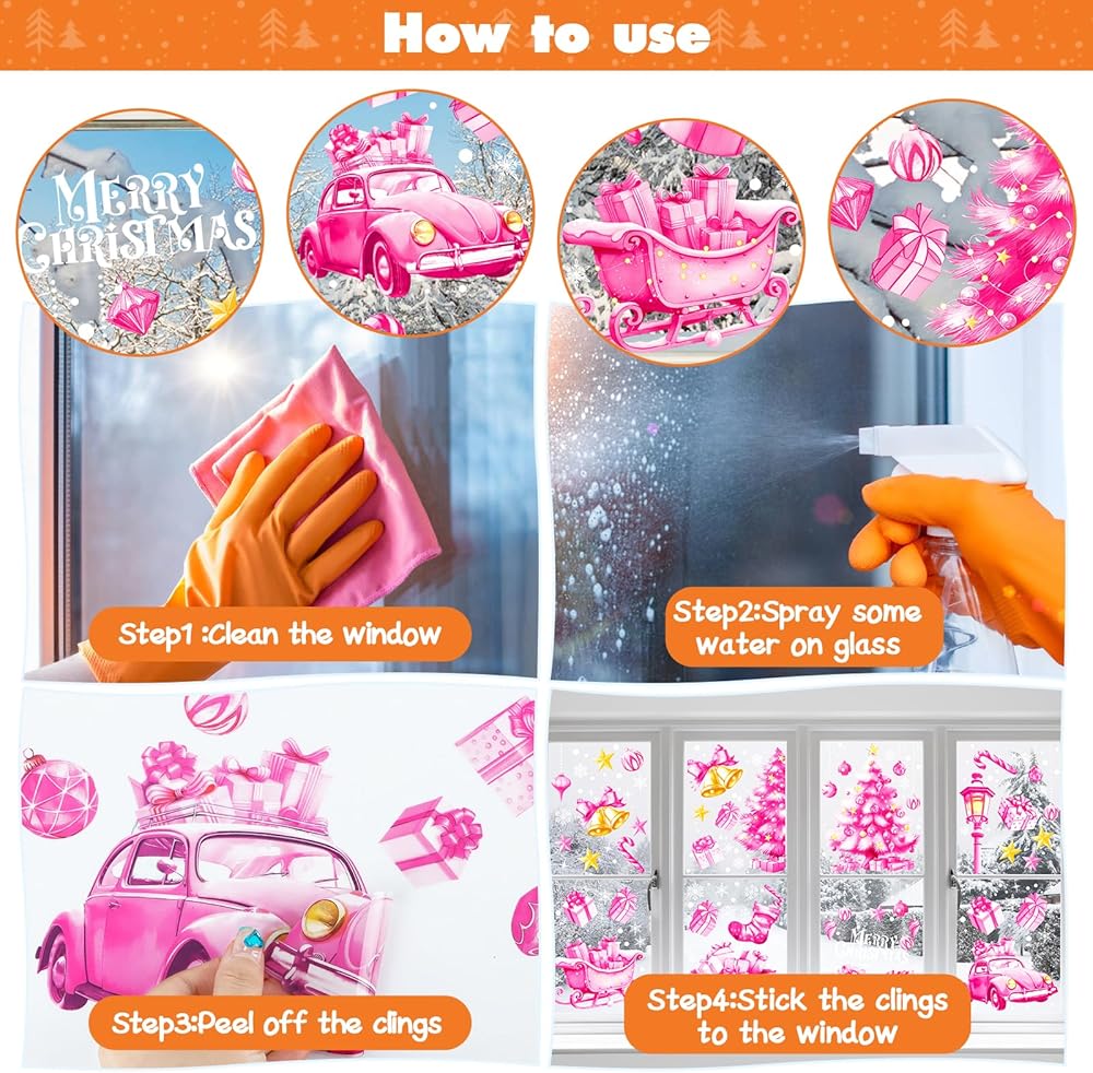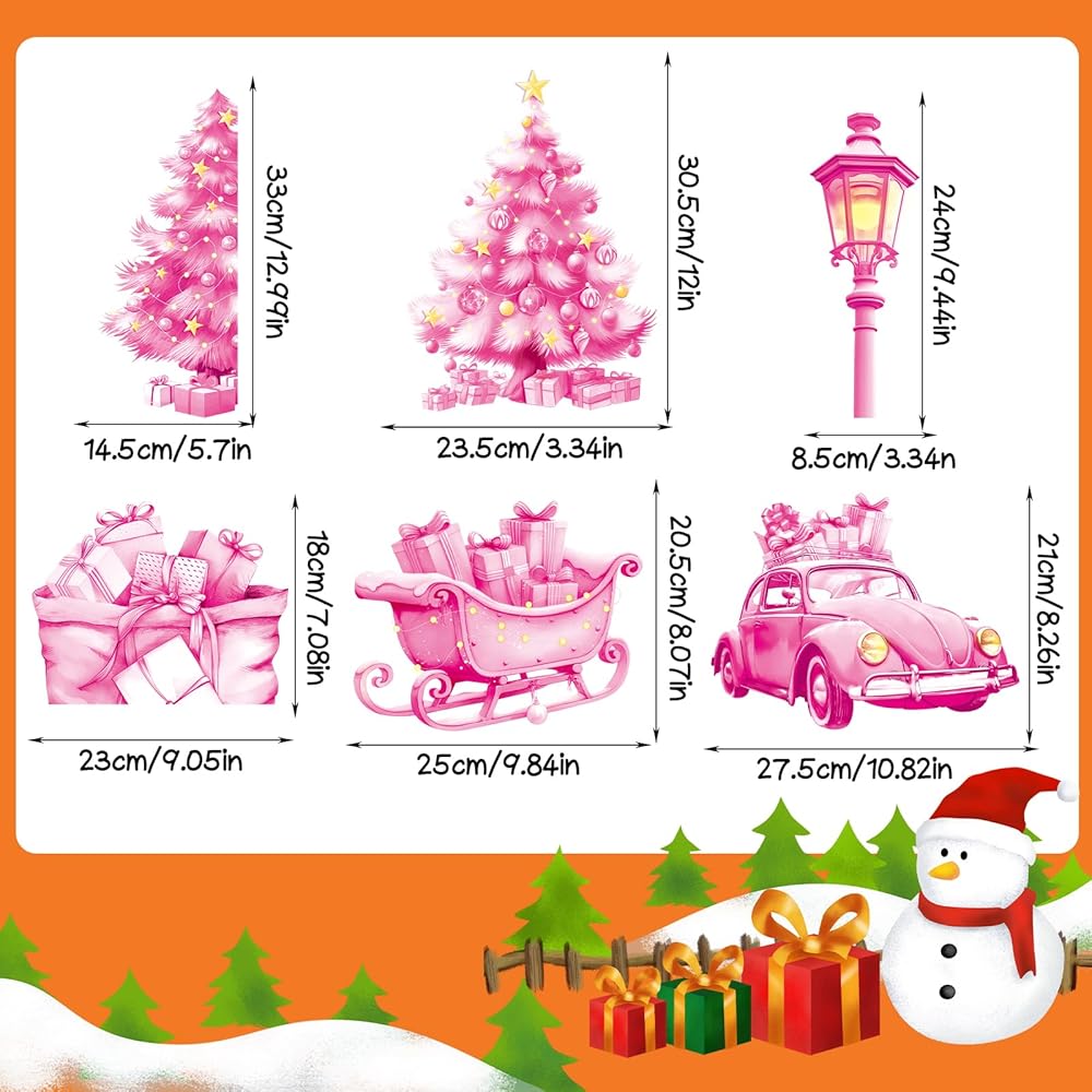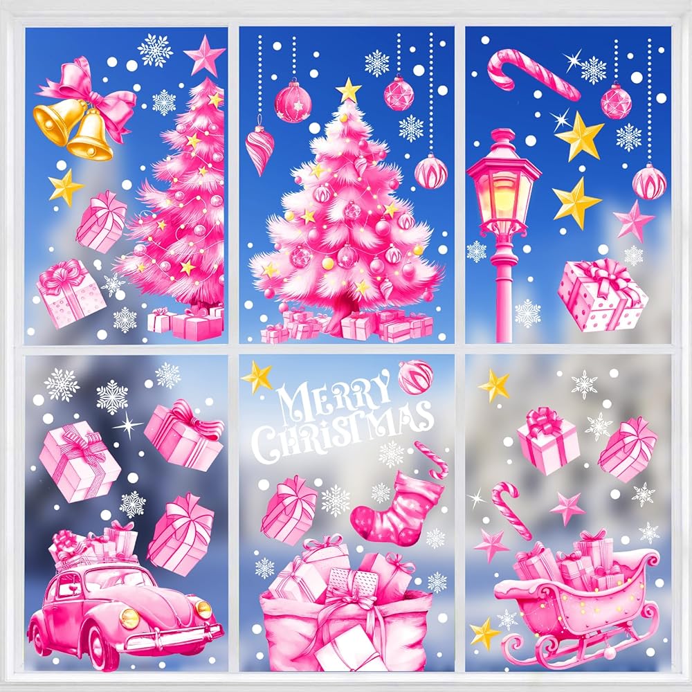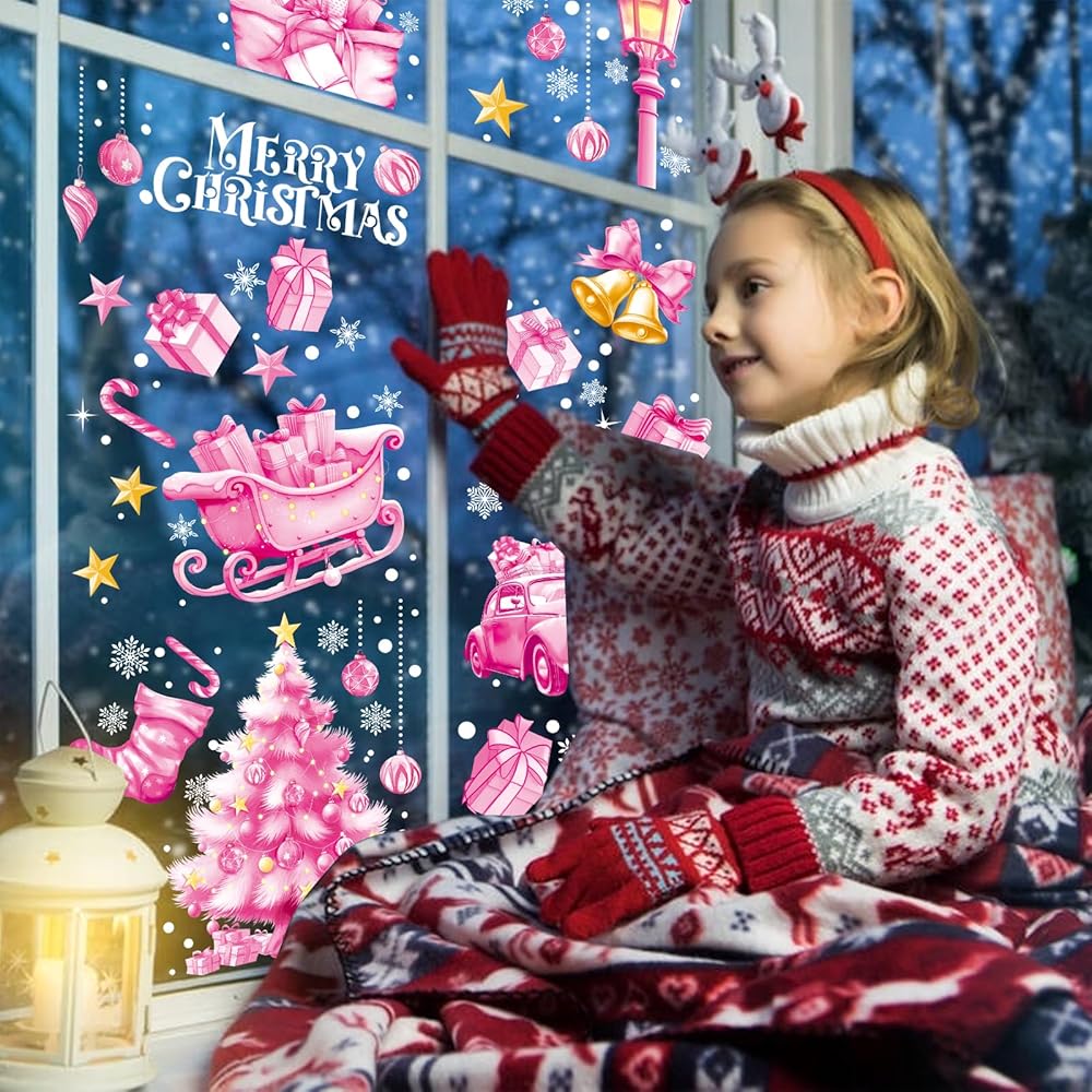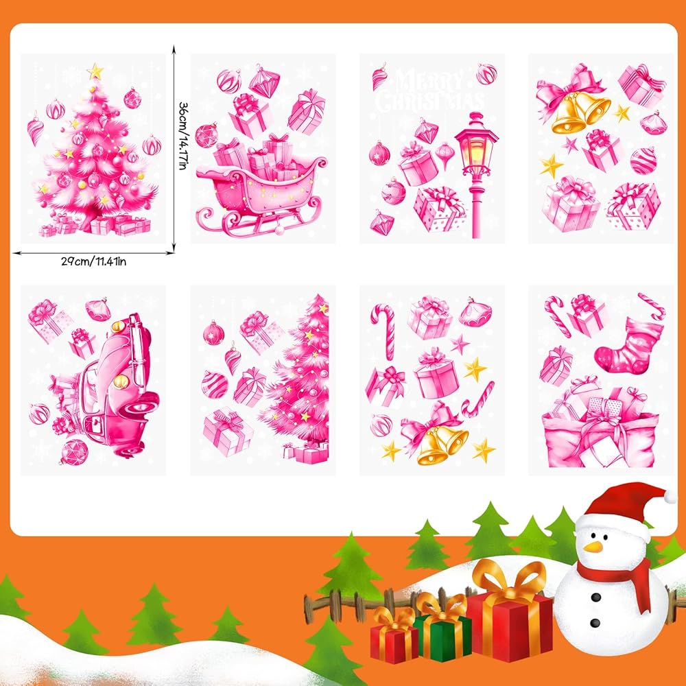 تصميم فريد: ملصقات نافذة عيد الميلاد الوردية مليئة بعناصر عيد الميلاد مثل كرات عيد الميلاد وقصب الحلوى والجرس وشجرة عيد الميلاد وصندوق هدايا عيد الميلاد والمزيد. خلق جو مختلف لحفلة عيد الميلاد الخاصة بك