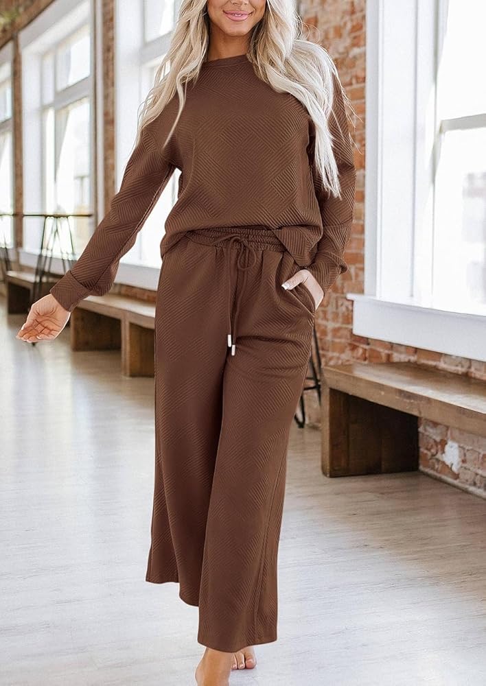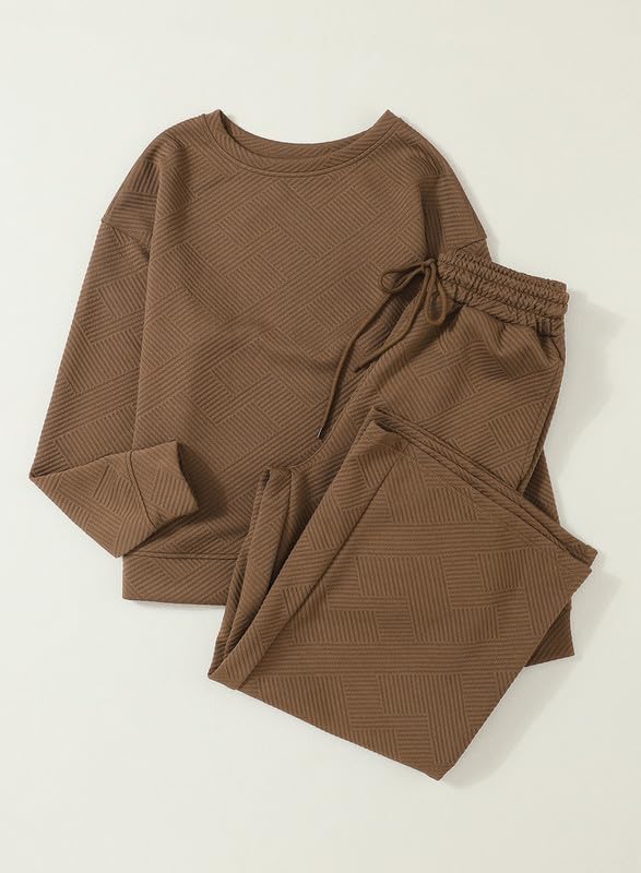 - السمات: ملابس مكونة من قطعتين، طقم بيجامات، رقبة مستديرة، بلوفر علوي بأكمام طويلة، بنطلون بخصر مرن، جيبين، لون ثابت، ومقاس فضفاض كبير الحجم، يخلق صورة ظلية مريحة ومترهلة.