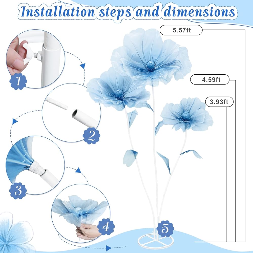 Easy to Install: Our giant flower set is intimately equipped with all the necessary connecting parts and a stable base. With just a few simple steps, you can easily create your favorite flower decoration by tightly connecting the base, stem and flower parts one by one.