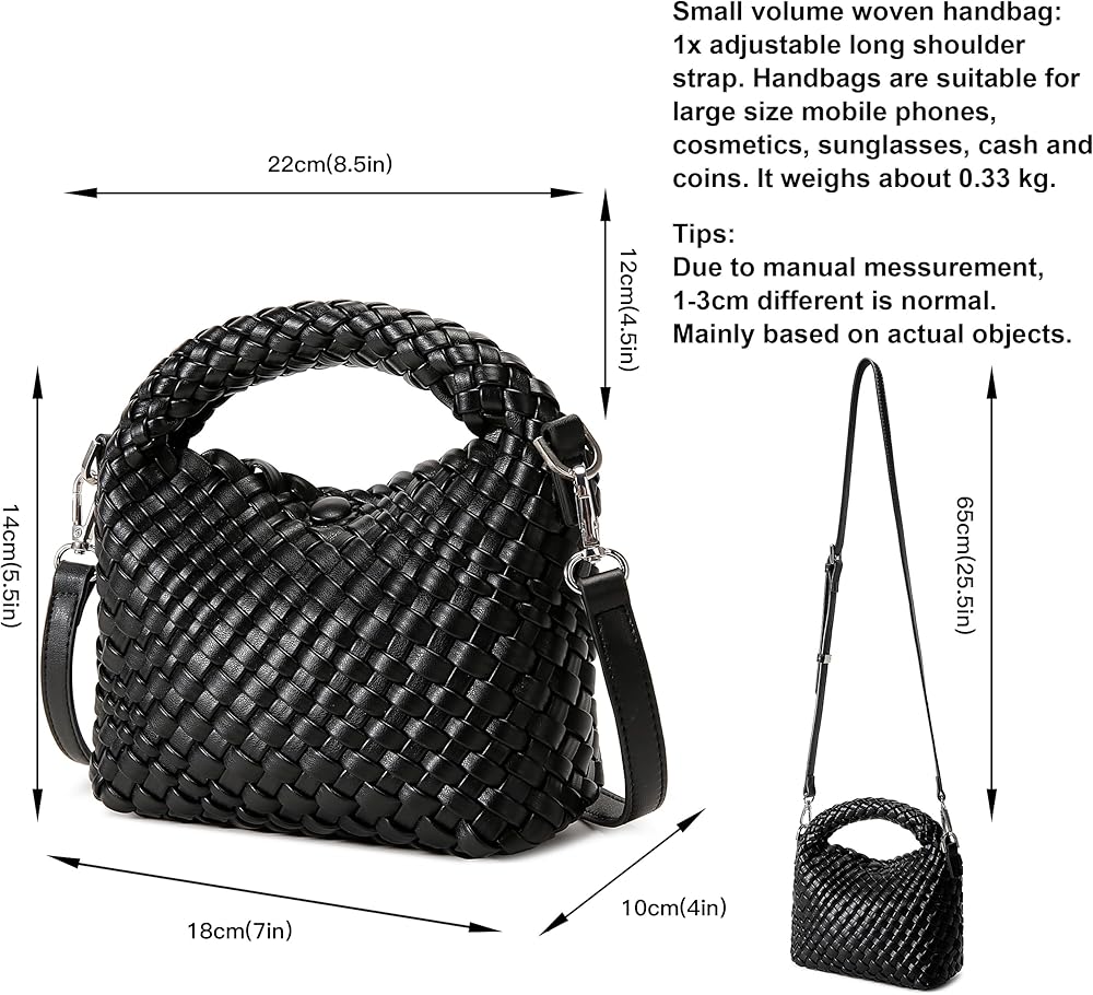 【Women's fashion small woven bag】 This woven bag is made of PU material, the fabric is soft, comfortable to the touch, light, the bag has a good texture, it can be used as a handbag, crossbody bag, the snap button is magnetic, suitable for quick fastening of closed handbags, The shoulder strap is detachable, the overall is small and elegant, suitable for most women's bags, easy to maintain, just wipe with clean water, convenient and quick.