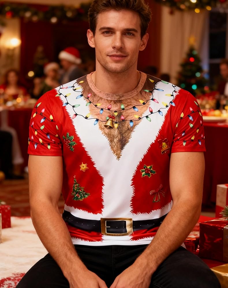 المناسبة: تي شيرت رجالي لعيد الميلاد مثالي لحفلات عيد الميلاد والحفلات التنكرية والرقص والملابس الكاجوال التي يمكنك ارتداؤها في أي مكان