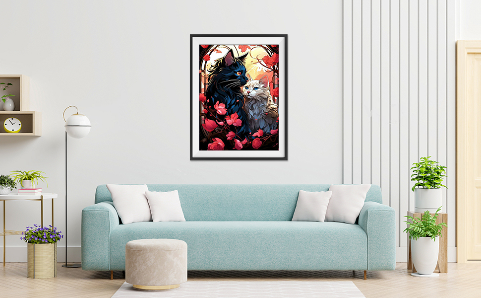 QENSPE Diamond Art Painting Kits for Adults,Romantic Couple Cats Full Drill Diamond Dots Paintings for Beginners,Round 5D DIY Arts and Crafts Gem Art Painting Kits 12x16inch