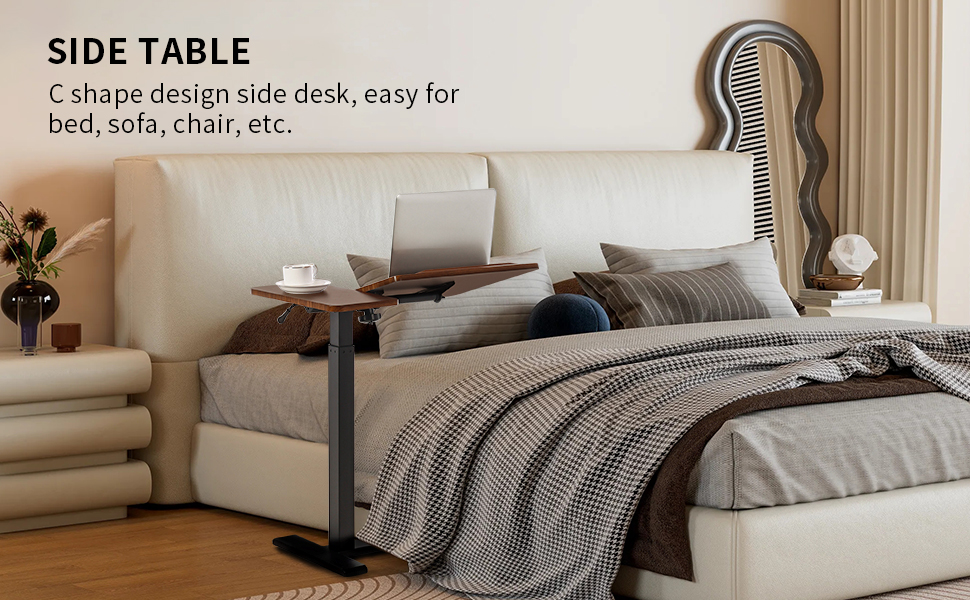MOBILE WORKSTATION: There are 4 hidden caster wheels that can rotates 360°, so you can move it to anywhere you want. 1.2" height desk feet allows to slide desk base part under bed, sofa, couch, recliner easily. NOTE: not fit for rolling it on carpet