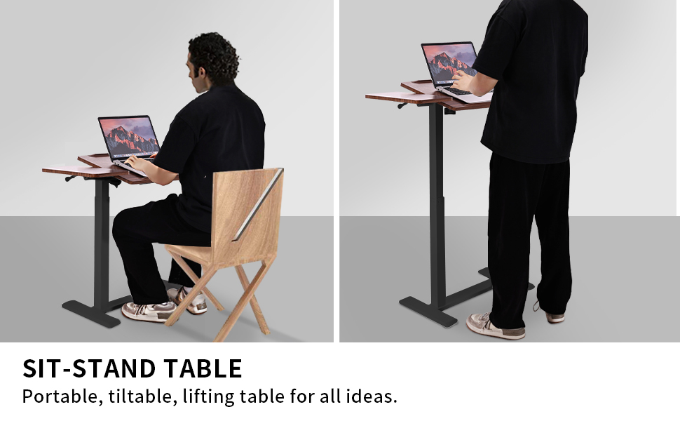 PNEUMATIC HEIGHT ADJUSTMENT: Drived by powerful gas spring system, desk can be easily raised and lowered in seconds by squeezing side lever. Height adjustment is 27.8" to 40.9" for all your ideal needs. No messed cords, no need worry about out of power