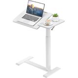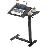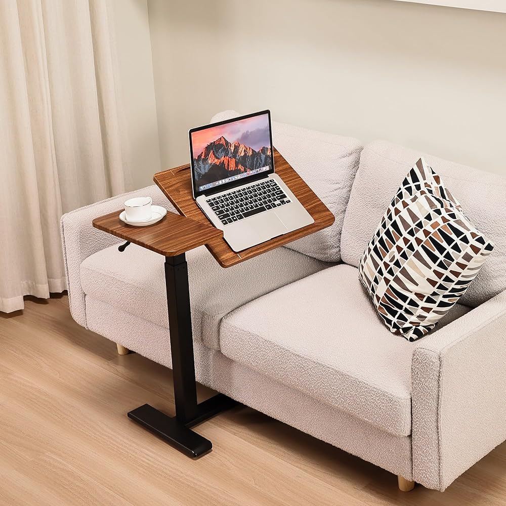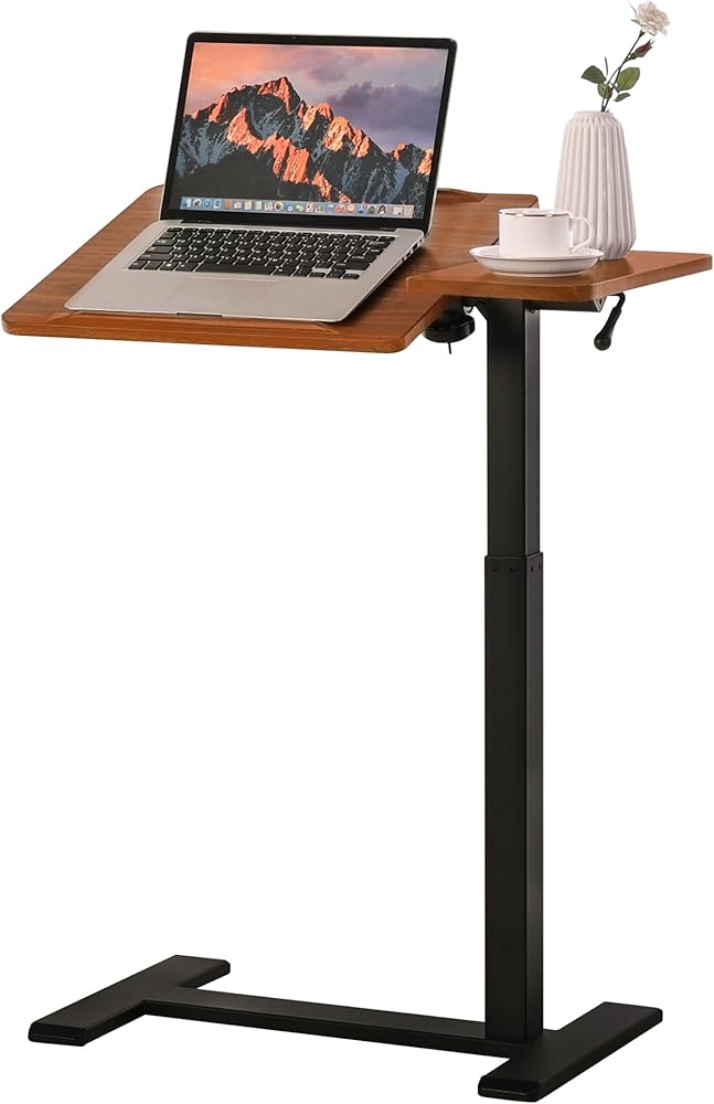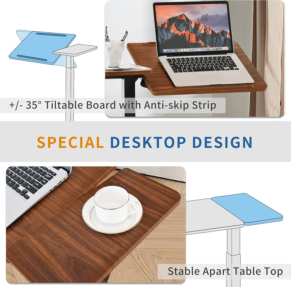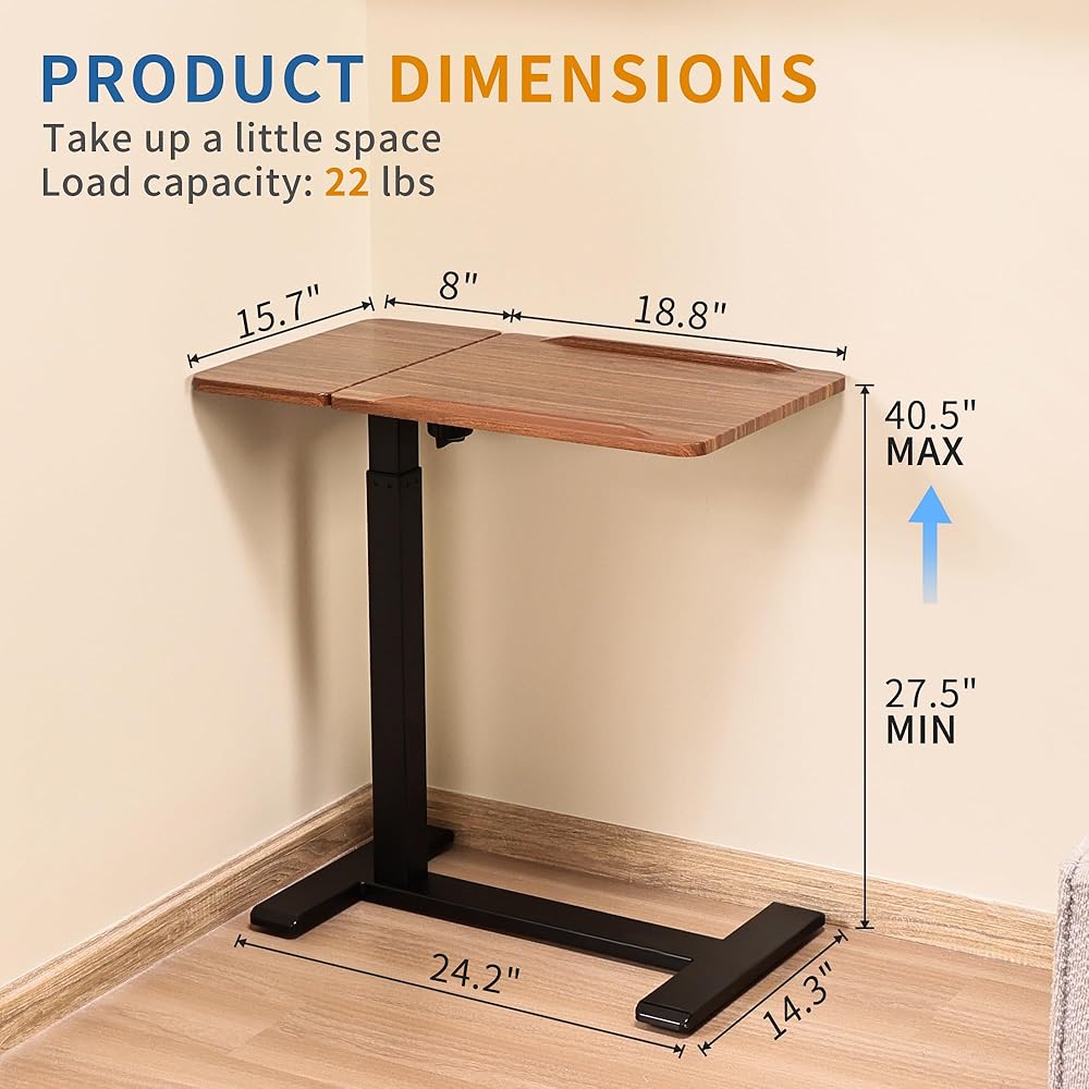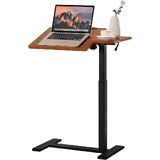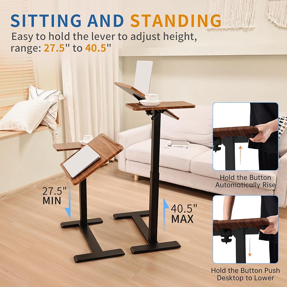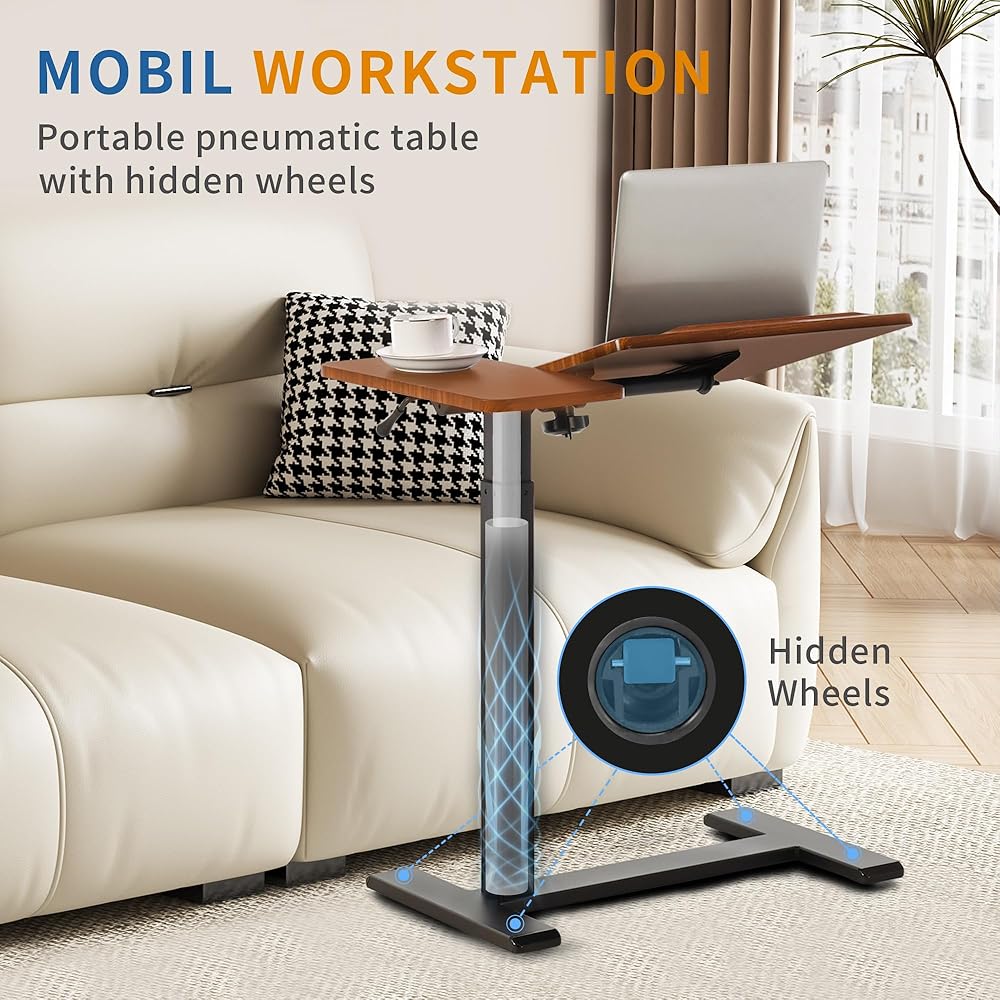 Adjustable Overbed Bedside Table with Hidden Wheels, Pneumatic Tilt Board Rolling Laptop Standing Desk Cart, Mobile Over Bed Sofa Chair Side End Tables, Walnut (Walnut)