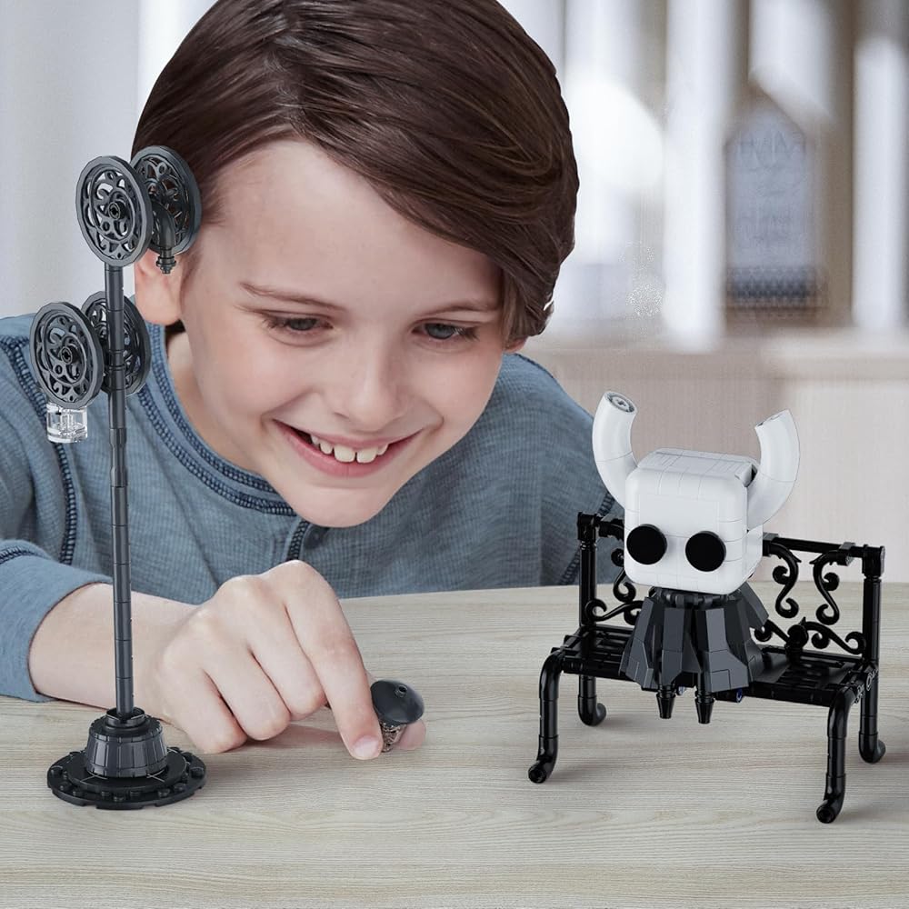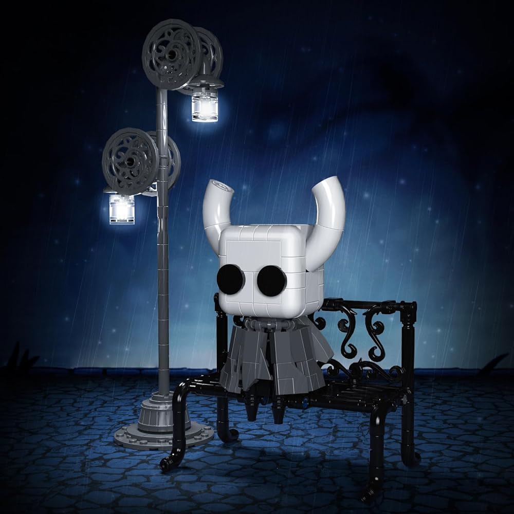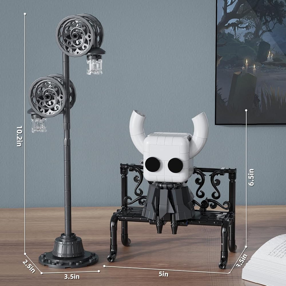التصميم: لعبة بناء الهالوين الكرتونية الفارس هذه مستوحاة من اللعبة الشهيرة، والتي تستعيد ميزات صورتها بشكل كبير، والشعور بالوحدة والجوف.