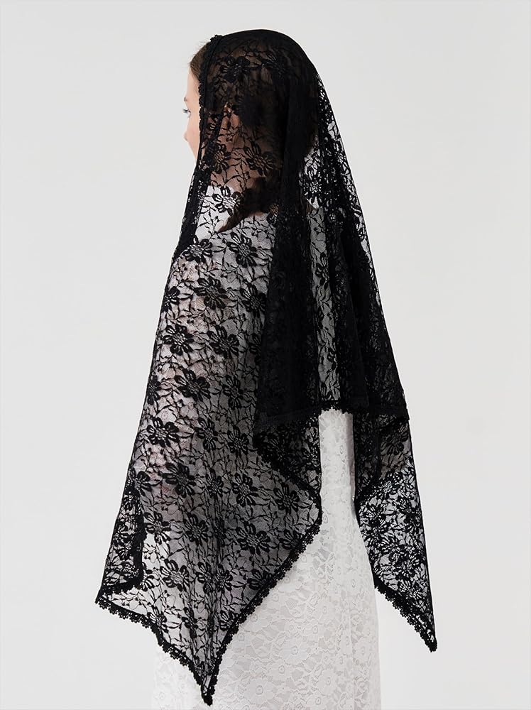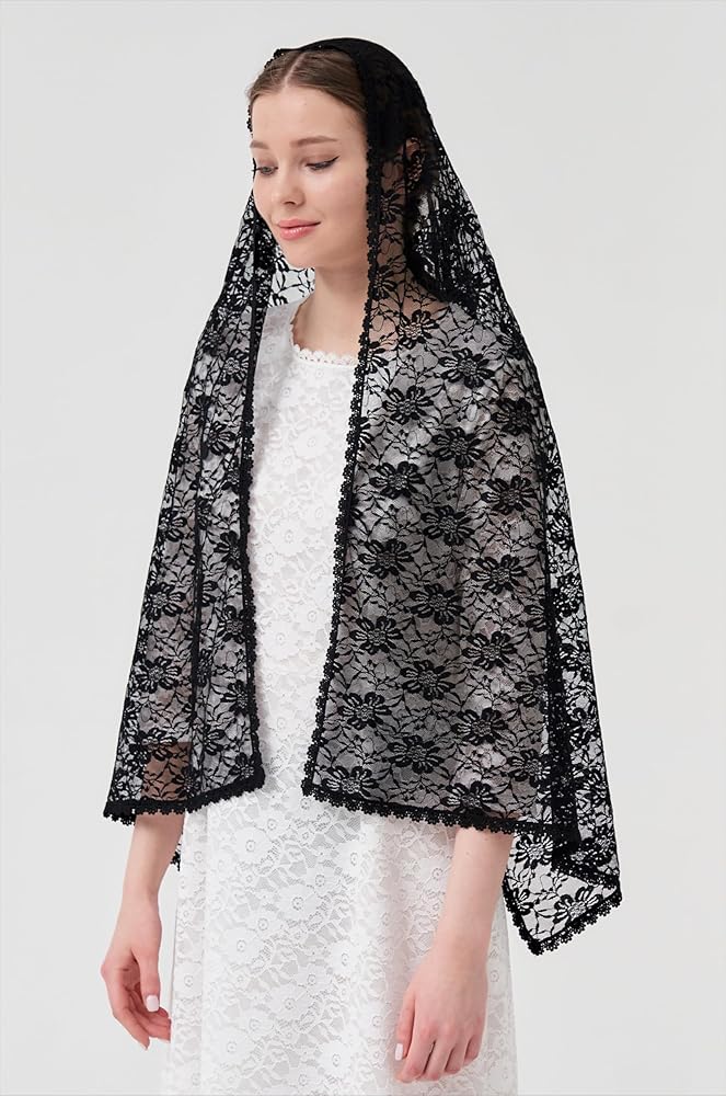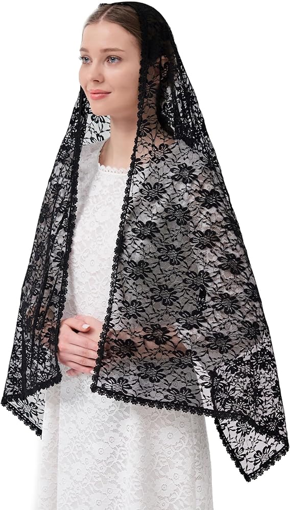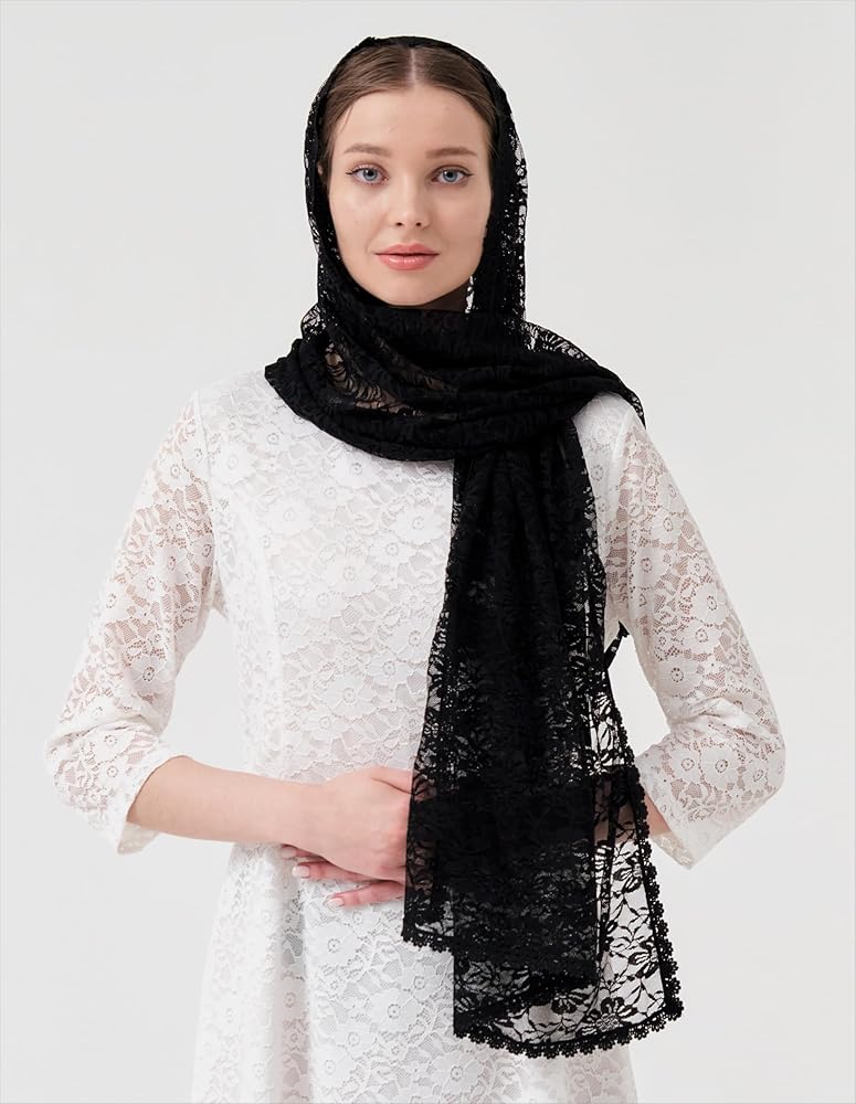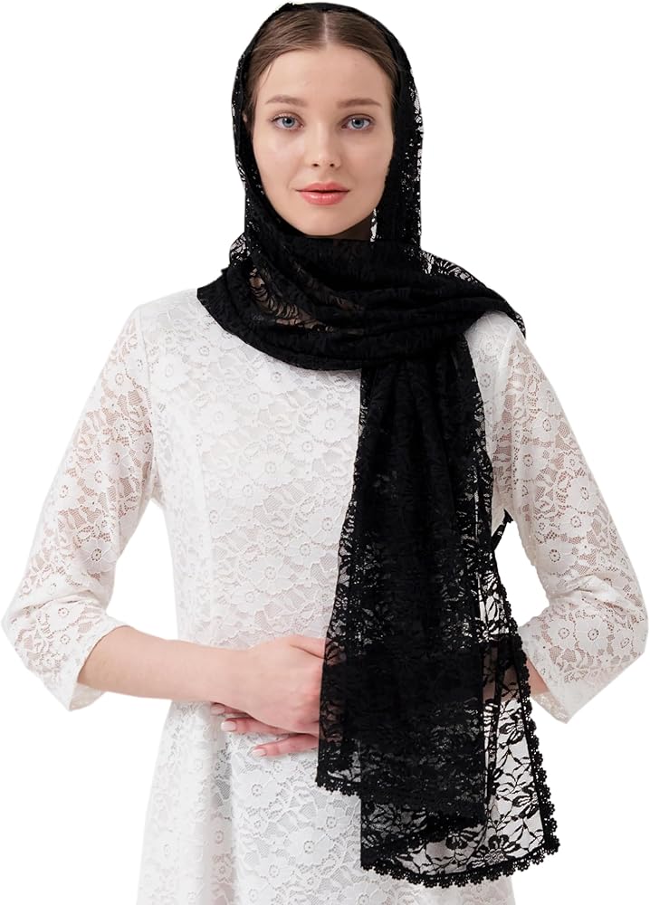بشكل عام خفيف الوزن وناعم. مادة دانتيل على شكل زهرة كبيرة مع حافة دانتيل كلاسيكية، أنيقة وواسعة. سهل الارتداء وطويل بما يكفي لتغطية الرأس والكتفين.