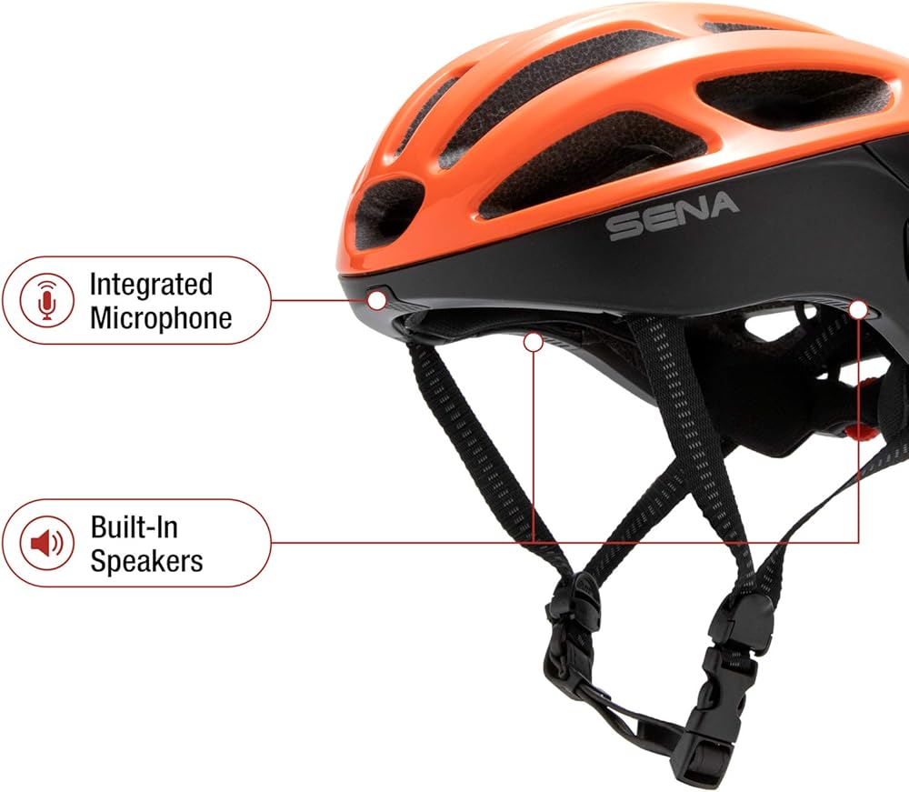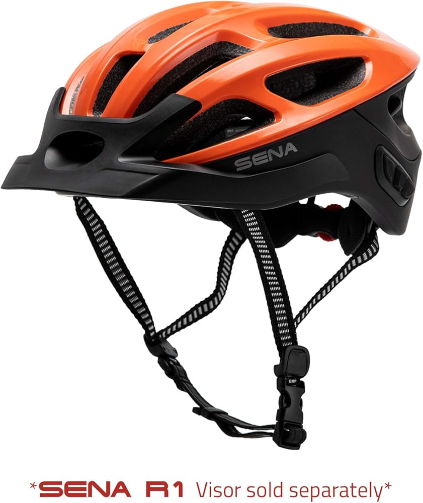 The Sena R1 Smart Cycling Helmet is a blend of technology and traditional construct, featuring built-in speakers and mic into the shell of a cycling helmet. Enhance your cycling experience within your cycling group with group intercom, giving you the ability to communicate with your group with a range of up to a half-mile. Sena's Advanced Noise Control technology ensures your voice is transmitted clearly with no wind or white noise to be heard. Listen to your music, hear GPS navigation, take phone calls and more when you pair your smartphone to the R1. With a comfortable design, removable and washable inner padding, an eco-leather chinstrap, and a spin lock to adjust the fit, the Sena R1 is ready for your next cycling adventure.
