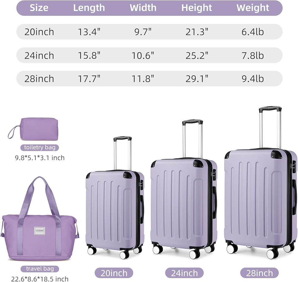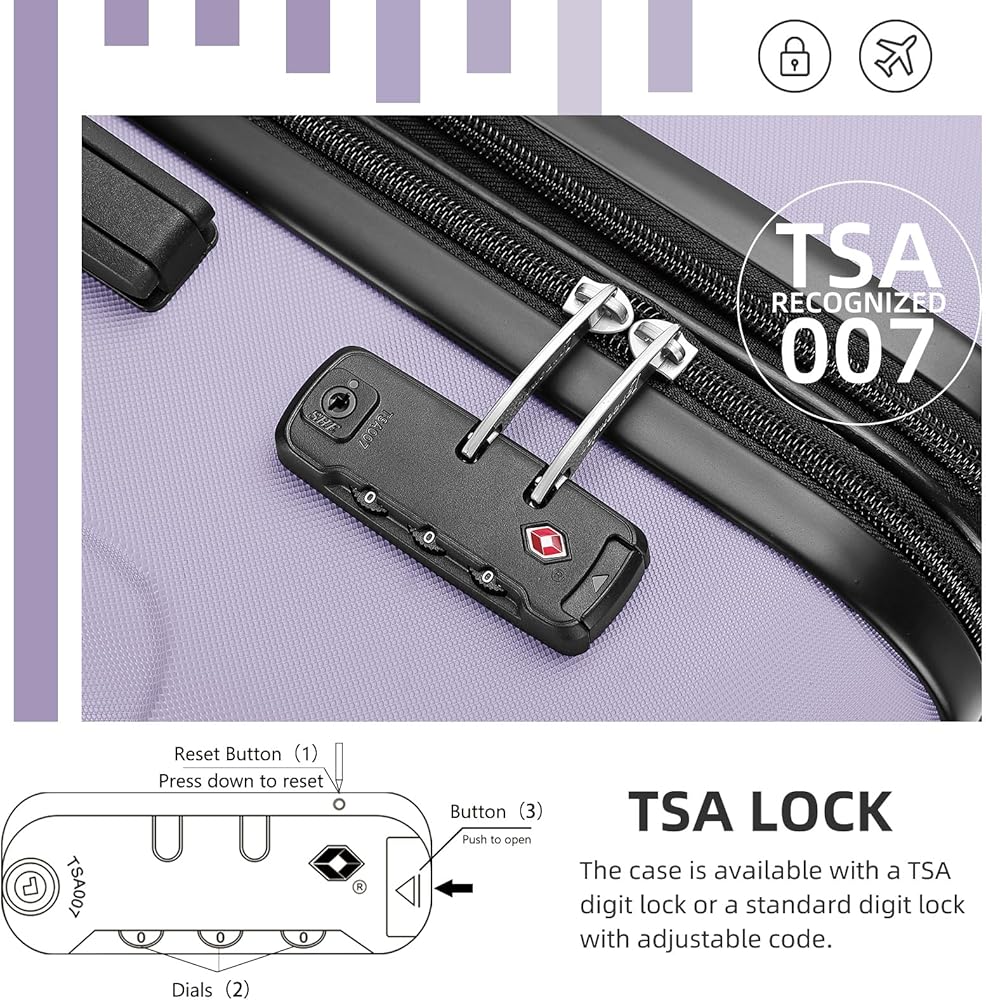 مجموعات الأمتعة مع قفل TSA: تتميز حقيبتنا بعناصر عملية مثل قفل معتمد من TSA ومقسم داخلي مبطن بالكامل، مما يضمن رحلات آمنة ومنظمة. سحاب معزز ومطور لن يسقط أو ينكسر بسهولة