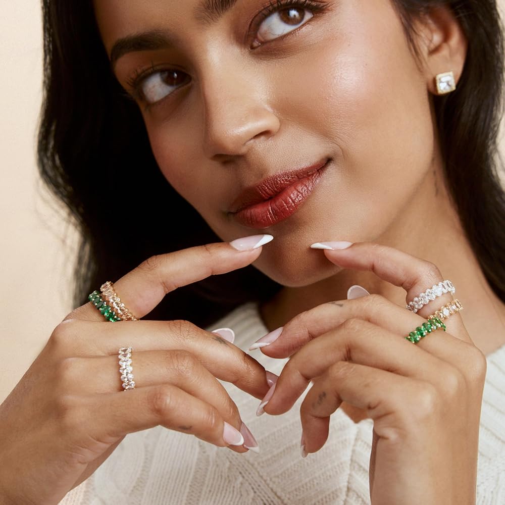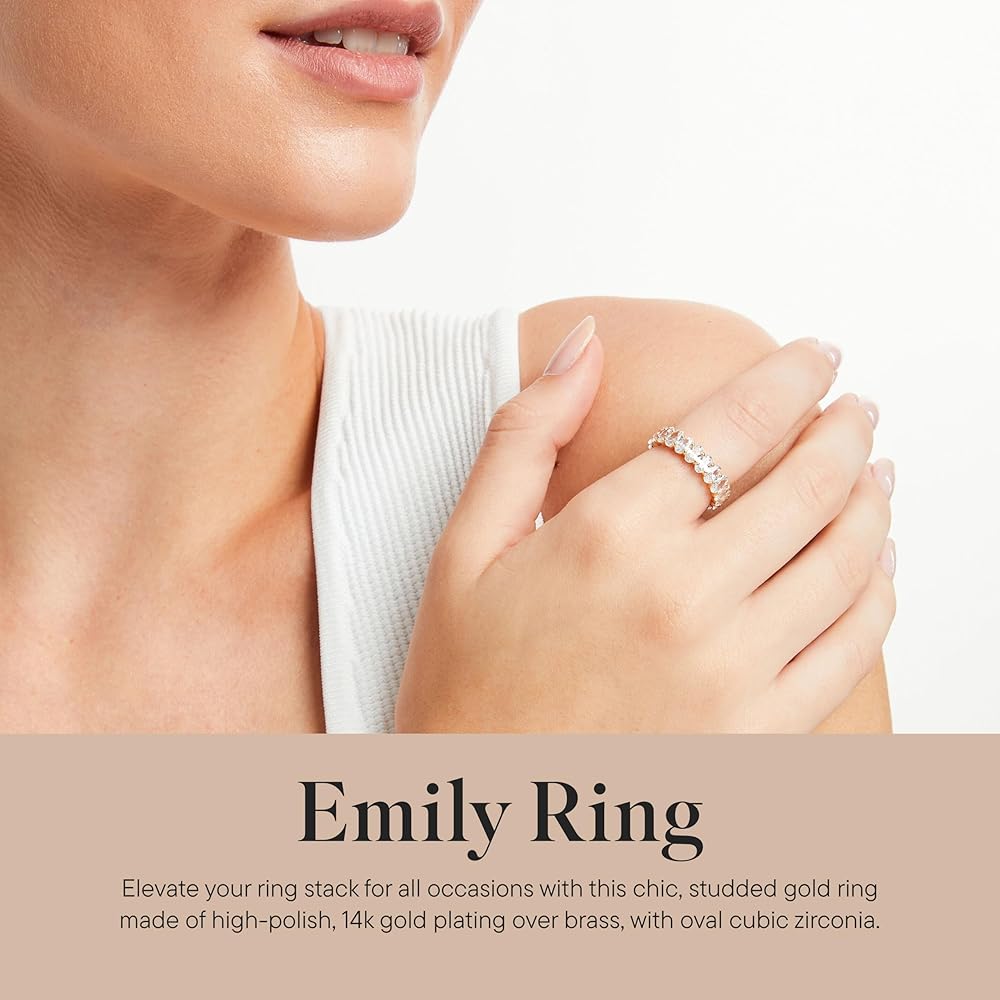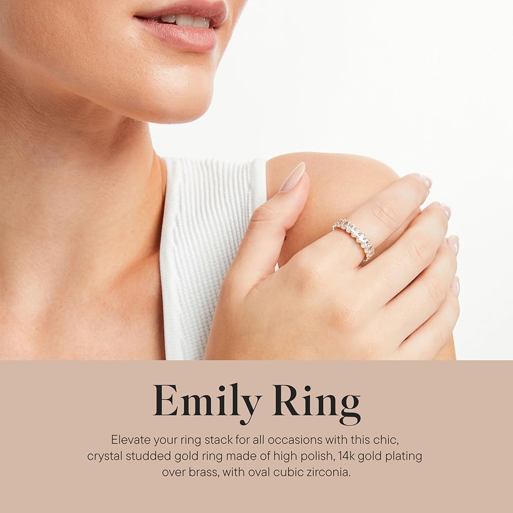تعرف على خاتم Go-To الجديد الخاص بك: خاتم Emily المميز يلفت الأنظار بأزرار كريستالية رائعة. ارتديه كل يوم لإضافة التألق واللون إلى أي ملابس