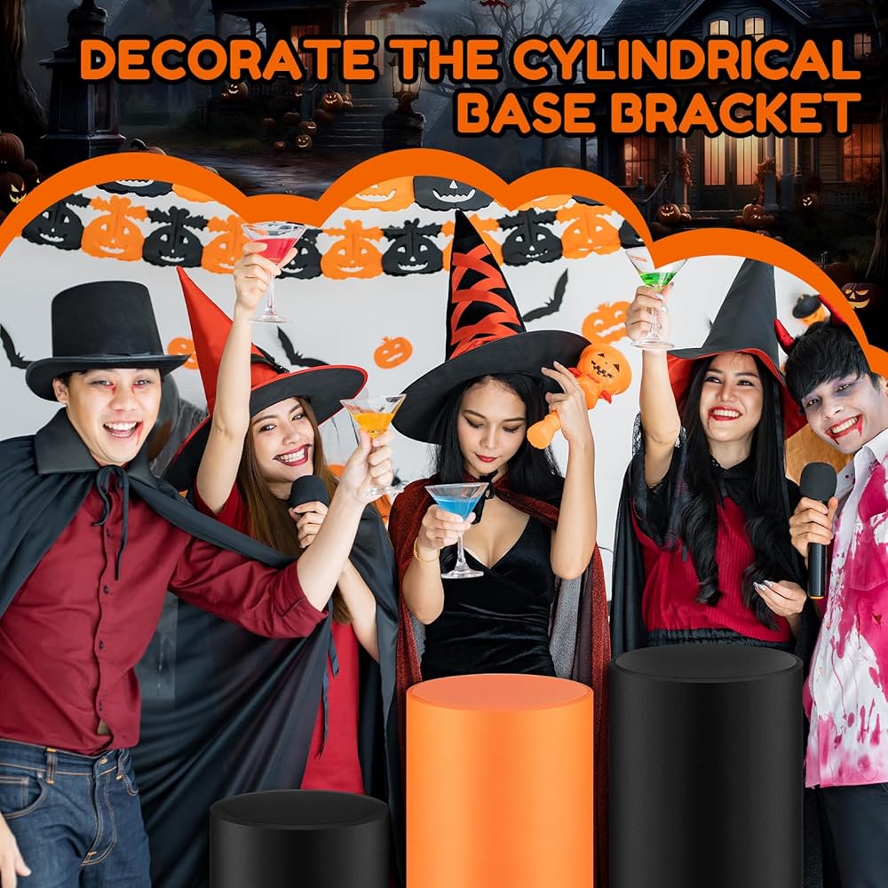 3 قطع من أغطية قاعدة أسطوانة الهالوين من الألياف اللدنة، حامل أسطواني أسود وبرتقالي، غطاء حامل لمستلزمات الهالوين، عيد ميلاد الطفل، حفل زفاف، ديكور خلفي