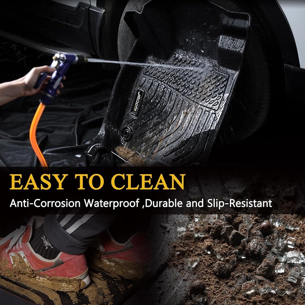 【Easy To Clean】Jenofa weatherproof mats keeping your Ford Explorer 2015-2019 clean is a breeze. Rain, snow, mud, leaves,sand, food debris, and liquids? Simply wipe with a wet cloth or remove them for a rinse and dry. With their high-edge design, you won't have to worry about rain or snow seeping into your car during inclement weather.