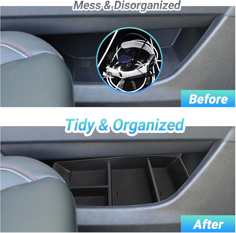 مواد فاخرة: صينية التنظيم السفلية لوحدة التحكم الخاصة بنا مصنوعة من مادة ABS الممتازة من أجل المتانة ومقاومة الخدش؛ مصممة لتتلاءم بسلاسة مع الجزء الداخلي للسيارة، تمامًا مثل الأجزاء الأصلية
