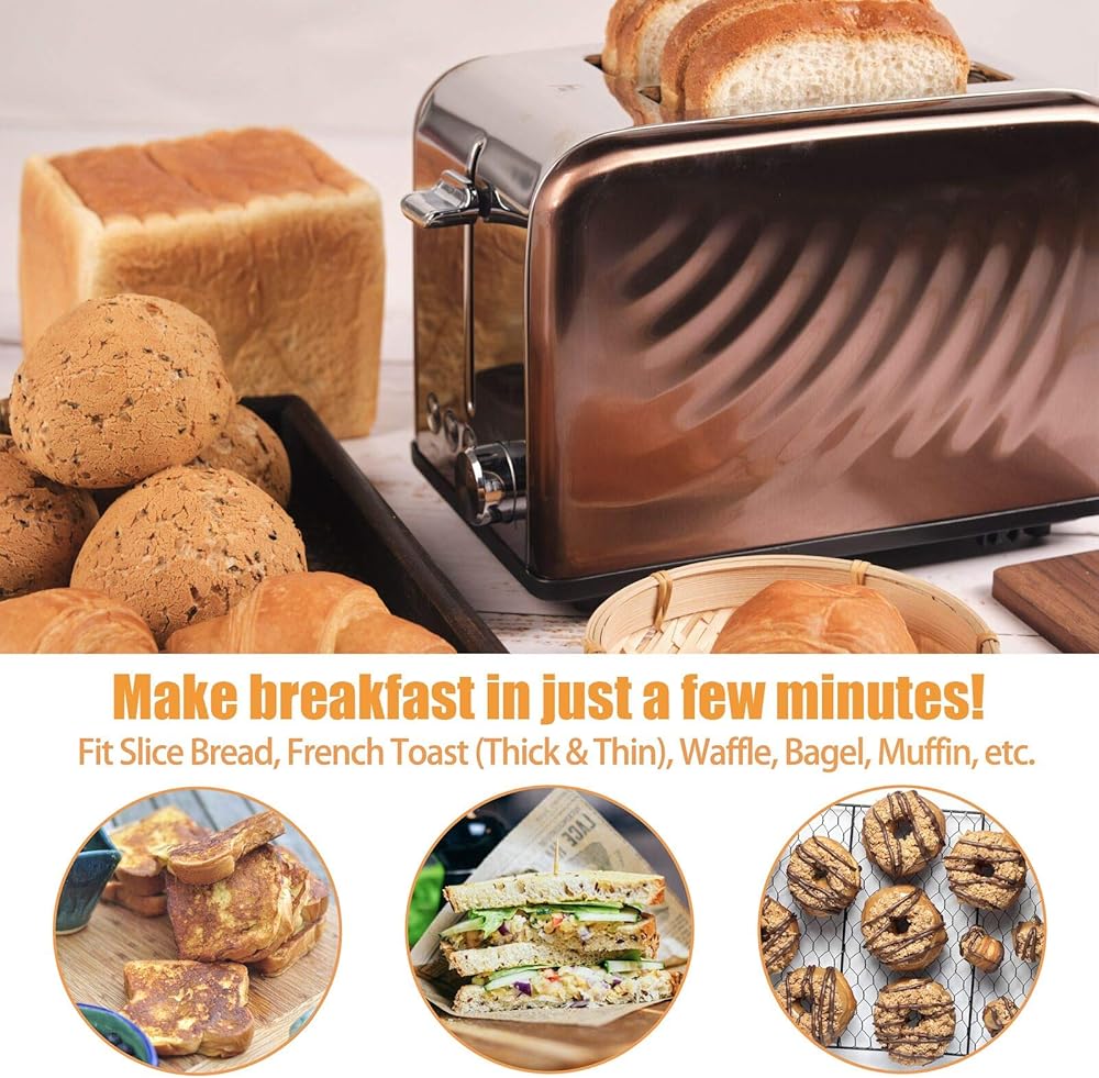[Uniquely Designed Stainless Steel Toaster] Cream white color and water ripple designed, the toaster looks sleek and adds a sense of nobility to your kitchen. With the Stainless Steel internally and externally, this toaster is absolutely safe for your families' health. Unlike other plastic toasters, the metal housing guarantees it toast without foul smell.