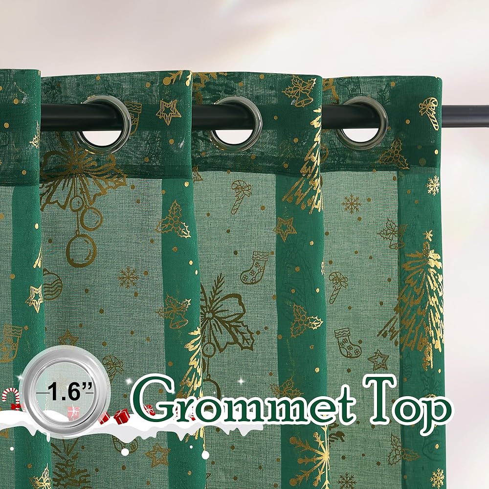 نمط خاص: هذه الستائر الشفافة الخضراء مصممة بأنماط طباعة مختلفة لعناصر عيد الميلاد لخلق مظهر مريح وأنيق، جيدة لغرفة المعيشة وغرفة النوم والمطبخ وما إلى ذلك. التصميم الرائع يجعلها نقطة رائعة بغض النظر عن المنزل أو في الحفلة ، مما يثير أجواء عيد الميلاد الرائعة.
