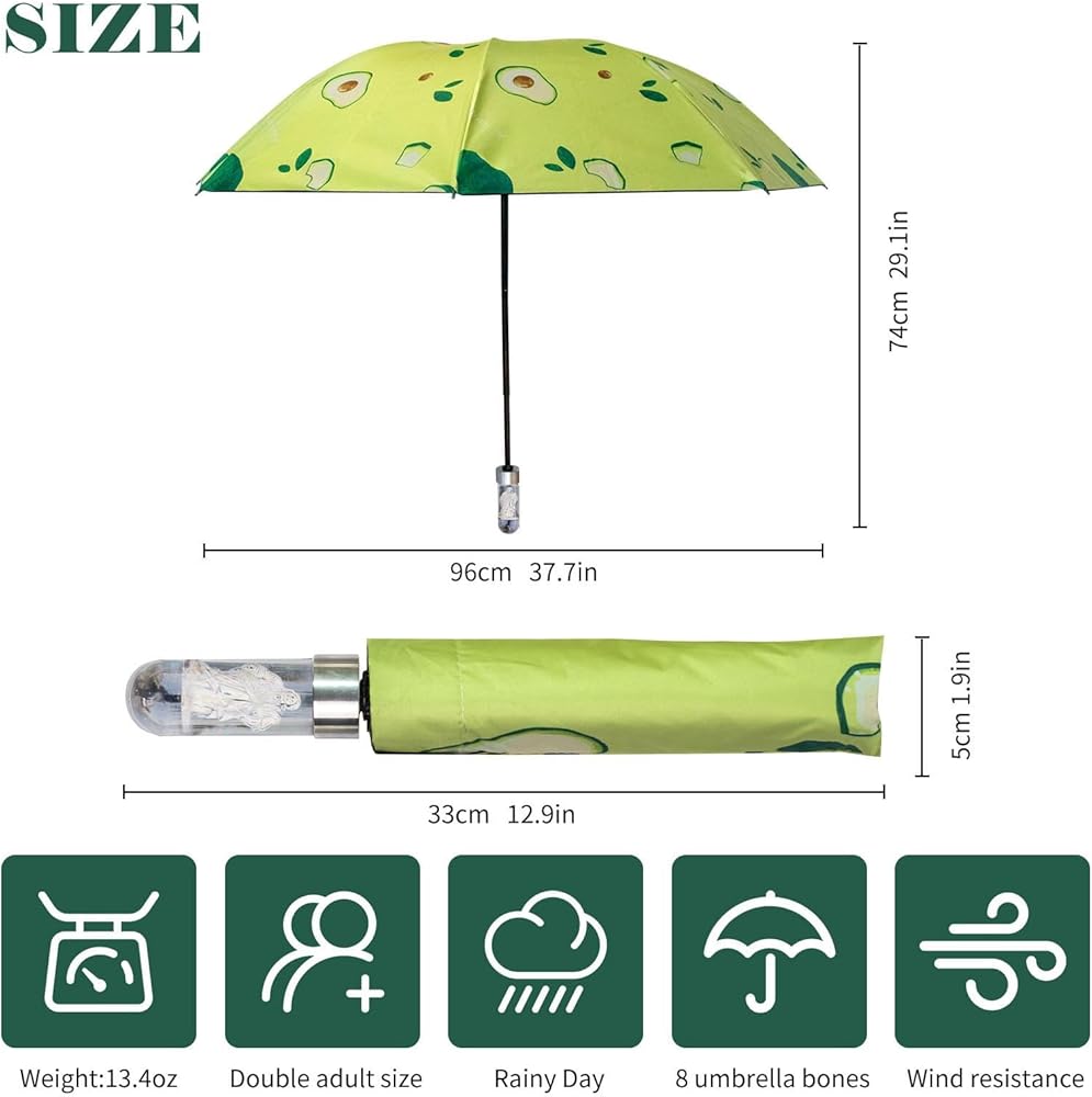 The aqfkl umbrella weighs 1.058 lbs (16.93 oz) and folds to 13.8 inches (35 cm). Easily stores in handbags, backpacks, luggage and car side pockets. Unfolds to 43.3 inches (110 cm) in diameter with a large canopy for 2 people.