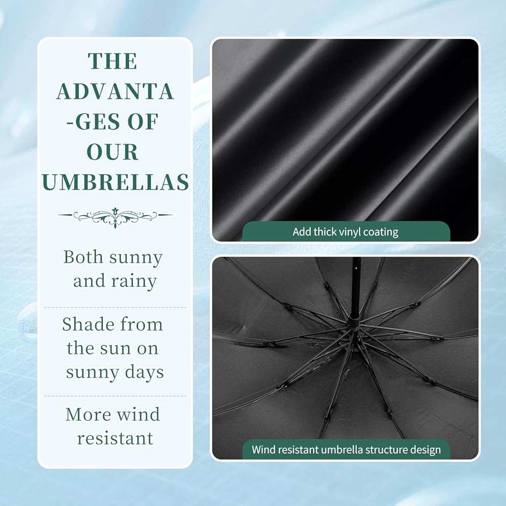 The aqfkl is reinforced with 10 steel umbrella bones, slightly bent to withstand strong gusts without flipping over. Large waterproof umbrella canopy, made of high density tapestry canopy. The surface of the umbrella has been treated with a special process to effectively waterproof it and dry it quickly, minimising the hassle of storing it after use.