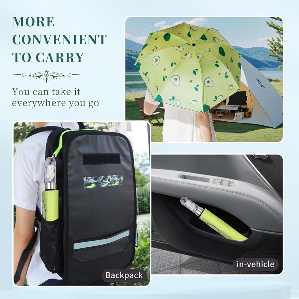 This car folding umbrella is perfect for keeping in your car and a creative gift for your parents, friends, coworkers and others. With this folding umbrella, you can always protect yourself from rain, wind and UV rays.It includes a carry bag, easy to carry when you are out and about。