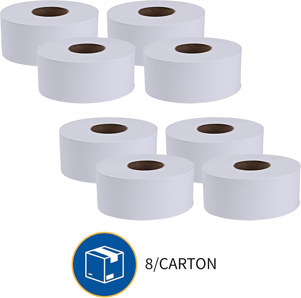 • Two-ply tissue is non-perforated and will fit in standard, jumbo bathroom-tissue dispensers. 12 per carton.