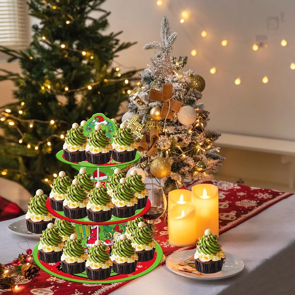 Elevate your Christmas party with this stunning 3-tier Christmas Cupcake Stand.
