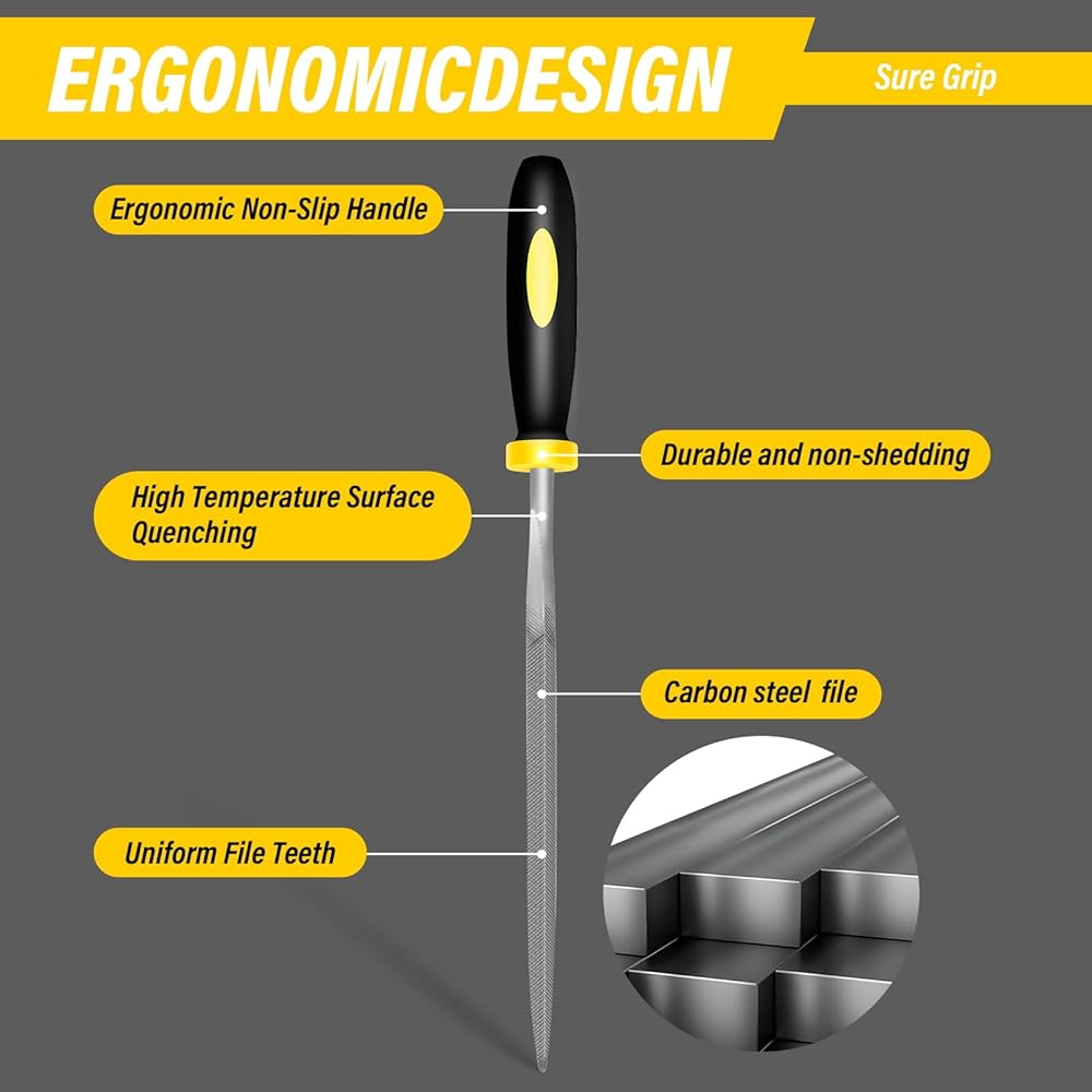 The IEGREMAR Jewelry needle file set features an ergonomic design with a non - slip rubber handle to provide comfort during use. Even in slippery conditions, this small hand files ensures a comfortable grip for long periods of use