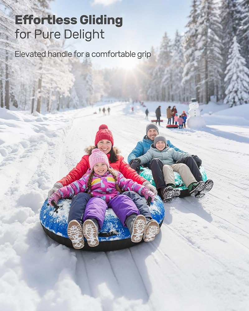 ممتعة لجميع الأعمار، سعة عالية: يوفر أنبوب الثلج ذو الحجم الكبير مقاس 48 بوصة (الحالة المفرغة) مساحة واسعة لكل من الأطفال والكبار للاستمتاع بمغامرات الثلج. مع سعة وزن قوية تصل إلى 500 رطل، فإنها تستوعب بسهولة راكبين فرديين أو مزدوجين، مما يضمن أن الجميع يمكنهم المشاركة في متعة الشتاء المثيرة.