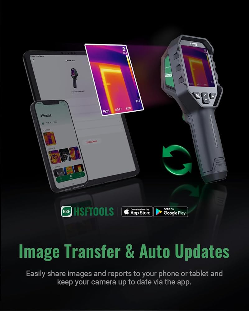 • 【اتصال لاسلكي وسهل الاستخدام】تتميز كاميرا الأشعة تحت الحمراء F2W بشبكة Wi-Fi للوصول بسهولة إلى الصور ومشاركتها على الهاتف الذكي أو الكمبيوتر اللوحي. بفضل تصميمه المدمج وحقيبة الحمل، فهو الأداة المثالية للعمل اليومي. باستخدام الزر السفلي، يمكنك التبديل بسهولة بين 7 لوحات ألوان بنقرة واحدة. يتيح لك هذا التنوع تلبية احتياجاتك المحددة في سيناريوهات مختلفة. تسمح فتحة الحامل ثلاثي القوائم مقاس ¼ بوصة -2 بسهولة التركيب باستخدام حامل ثلاثي القوائم للمساعدة في أعمال الفحص.