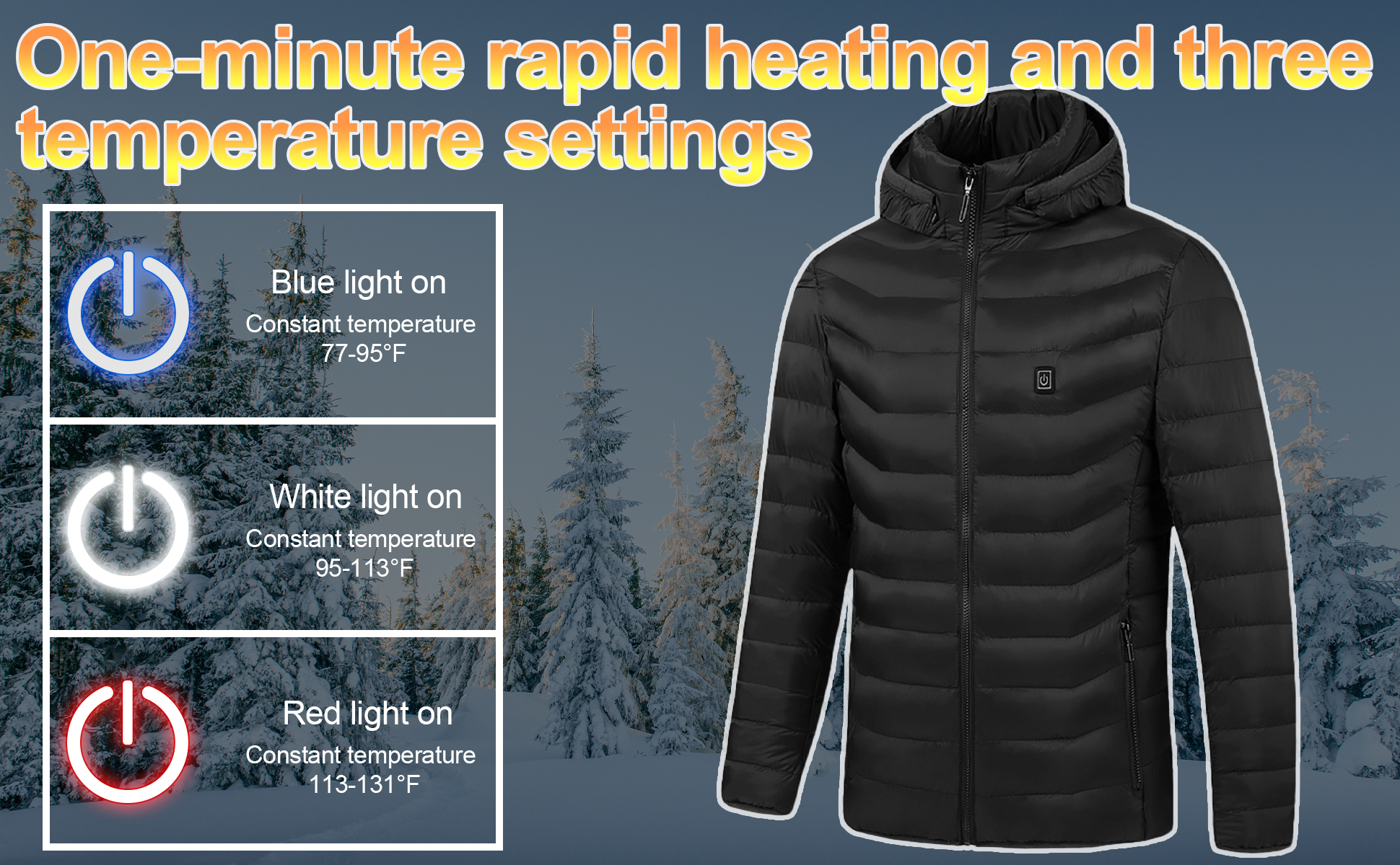 تسخين سريع في دقيقة واحدة ومستويات حرارة قابلة للتعديل - تستخدم سترة ليموندو الساخنة للرجال شريحة متقدمة للتحكم الذكي في الحرارة، مما يتيح التسخين السريع في غضون 60 ثانية عند التنشيط. يوفر ثلاثة مستويات حرارة قابلة للتعديل لتناسب الظروف البيئية المتنوعة، وهو مثالي للأنشطة الخارجية مثل التخييم والرحلات والتزلج وتسلق الجبال والمشي لمسافات طويلة والمزيد.