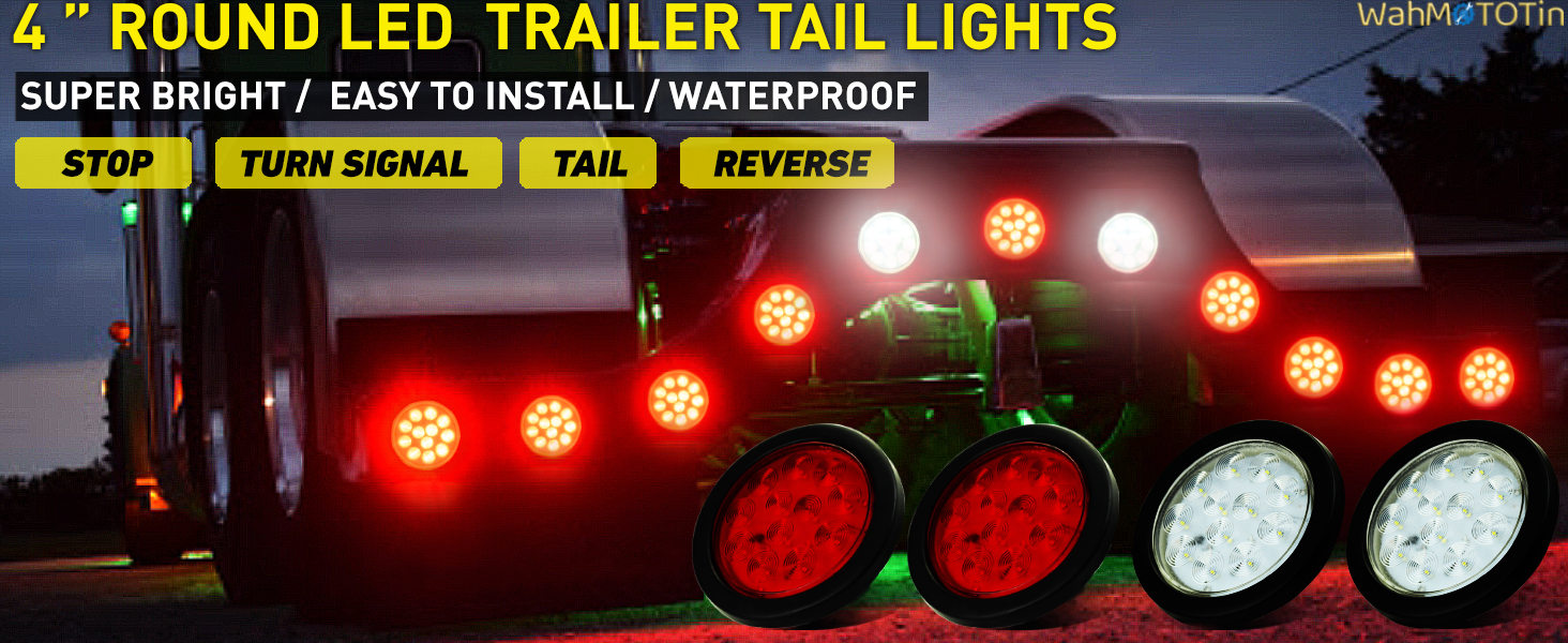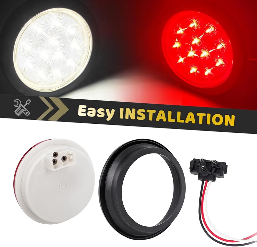 مجموعة مصابيح خلفية LED للمقطورة مقاس 4 بوصة، 12 مصباح LED لإيقاف الفرامل وتشغيل أضواء عكسية مع حلقة مطاطية محكمة الغلق مقاومة للماء IP67، للشاحنة/RV/الشاحنة، 2 أحمر و2 أبيض، تيار مستمر 12 فولت