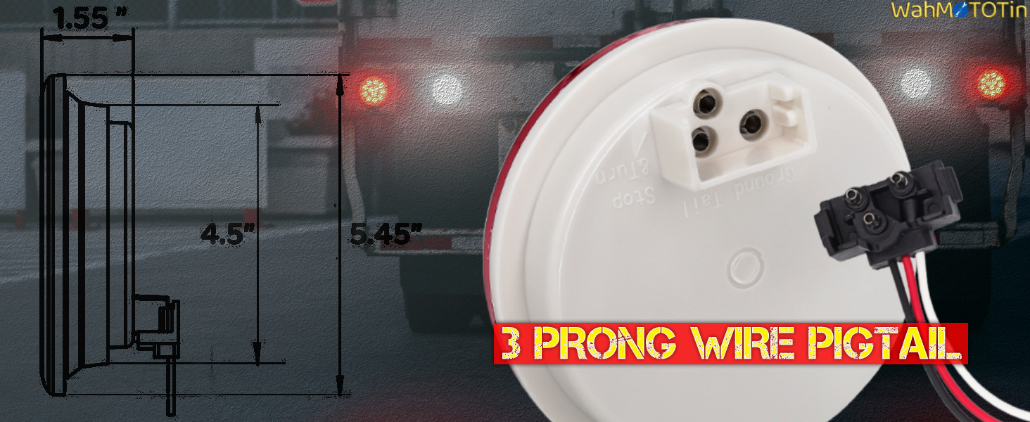 • كيف يعمل: تم تصميم هذا المنتج ليكون سهل التثبيت ويمكن عادةً تركيبه باستخدام أجهزة التثبيت أو الأقواس. مجموعة الأسلاك الكهربائية مرمزة بالألوان على النحو التالي: السلك الأبيض سالب (-)، والسلك الأحمر مخصص للسطوع الأحمر العالي لإشارات الفرامل/التوقف/الانعطاف والسطوع الأبيض العالي للنسخ الاحتياطي العكسي، والسلك الأسود مخصص لـ أضواء الذيل. وبشكل عام، فهو يساعد على تحسين رؤية وسلامة المقطورات/الشاحنات على الطريق.