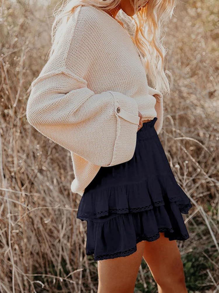 مطابقة: تنورة الكروشيه النسائية المكشكشة تتماشى بشكل مثالي مع القمصان بدون أكمام والسترات والقمصان والسترات الصوفية والسترات الصوفية والقمصان الرياضية لخلق مظهرك الكاجوال المفضل