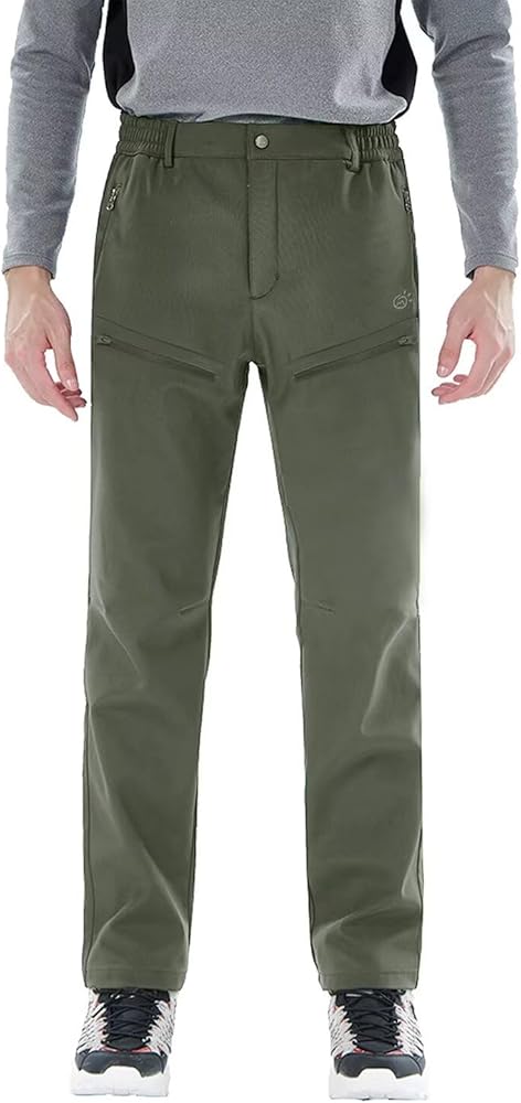 Waterproof Material: These snow pants are made with a three-layer construction, softshell stretchy material with a water repellent finish and breathable technology which ensures that the pants remain dry in wet conditions. The fleece lining provides extra warmth and comfort in cold weather, keeping the wearer comfortable and dry during outdoor activities.