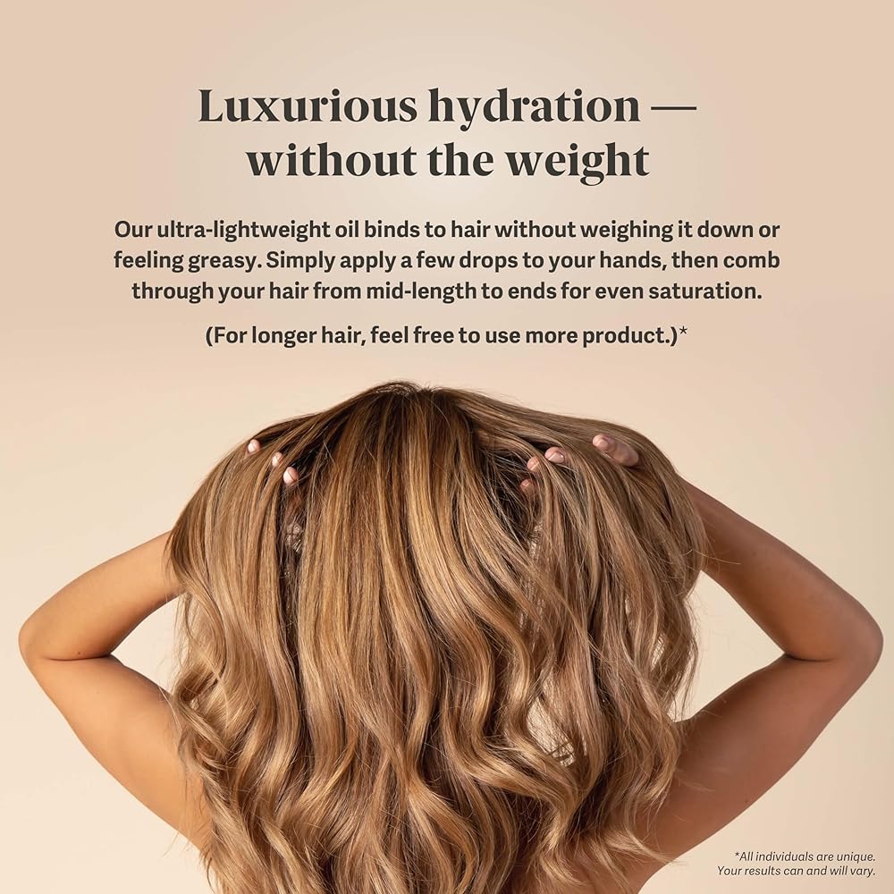 كيفية الاستخدام: قبل التصفيف: ضعي بضع قطرات على اليدين، وافركي راحتي اليدين معًا، ثم مشطي أصابعك خلال الشعر الرطب من منتصف الطول إلى الأطراف. بعد التصفيف: ضعي بضع قطرات على يديك، وافركي راحتي يديك معًا، ثم ضعيه على الشعر الجاف ووزعيه على الأطراف.