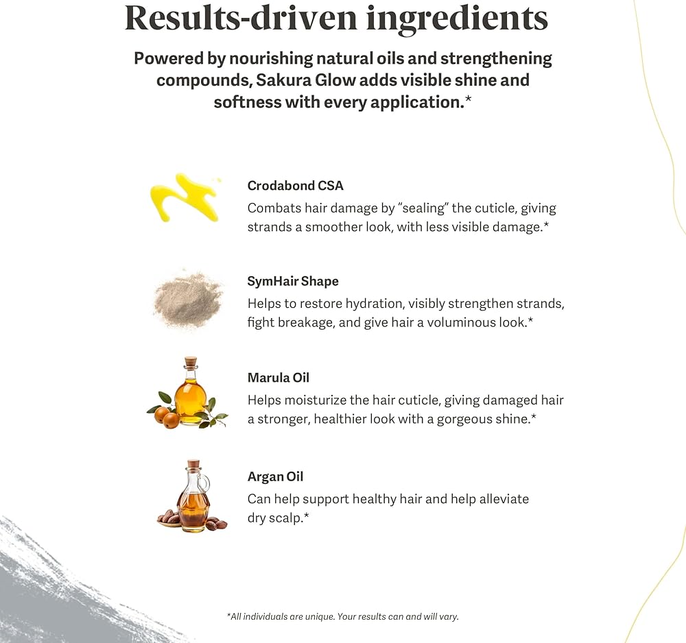 إصلاح وترطيب وإزالة التجعد: هذا الزيت خفيف الوزن وفائق الترطيب يرتبط بالشعر على الفور، مما يضيف لمعانًا واضحًا وأقصى قدر من التحكم في التجعد. يعتبر زيت ساكورا جلو المغذي للشعر، المدعم بالزيوت الطبيعية المغذية والمركبات المقوية، مثاليًا لأي شخص يرغب في المساعدة في استعادة الترطيب الصحي واللمعان للشعر التالف أو الذي لا حياة له بشكل واضح.*