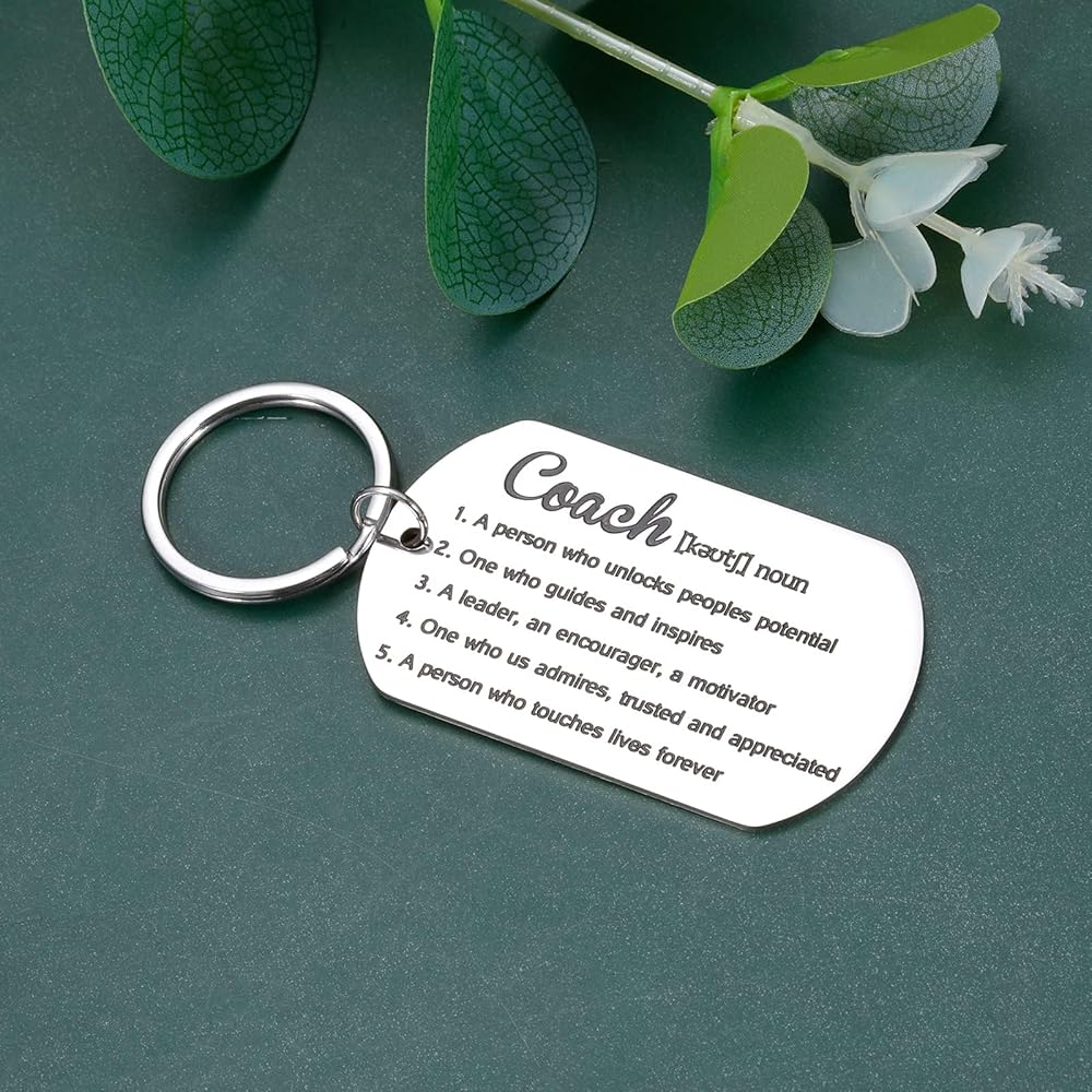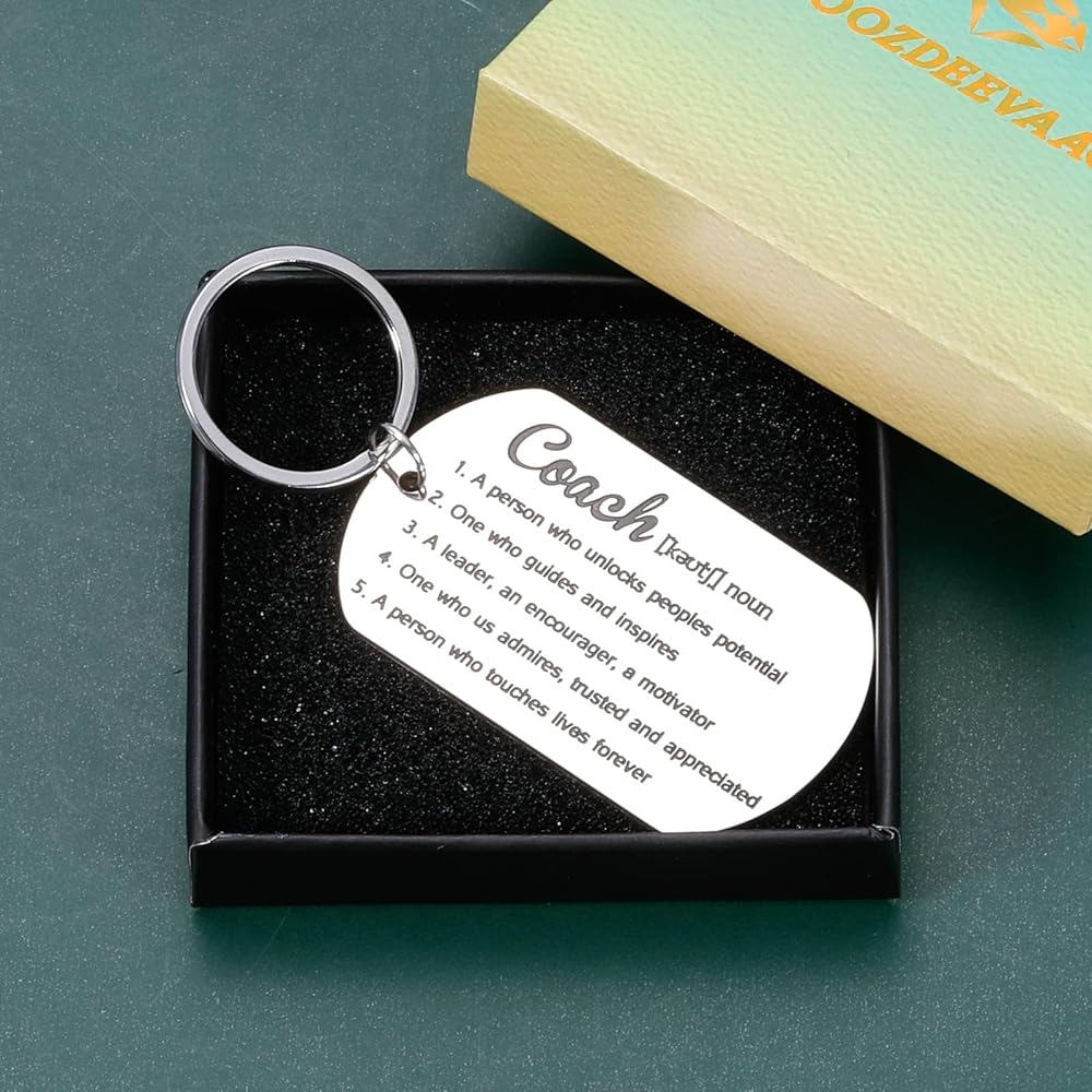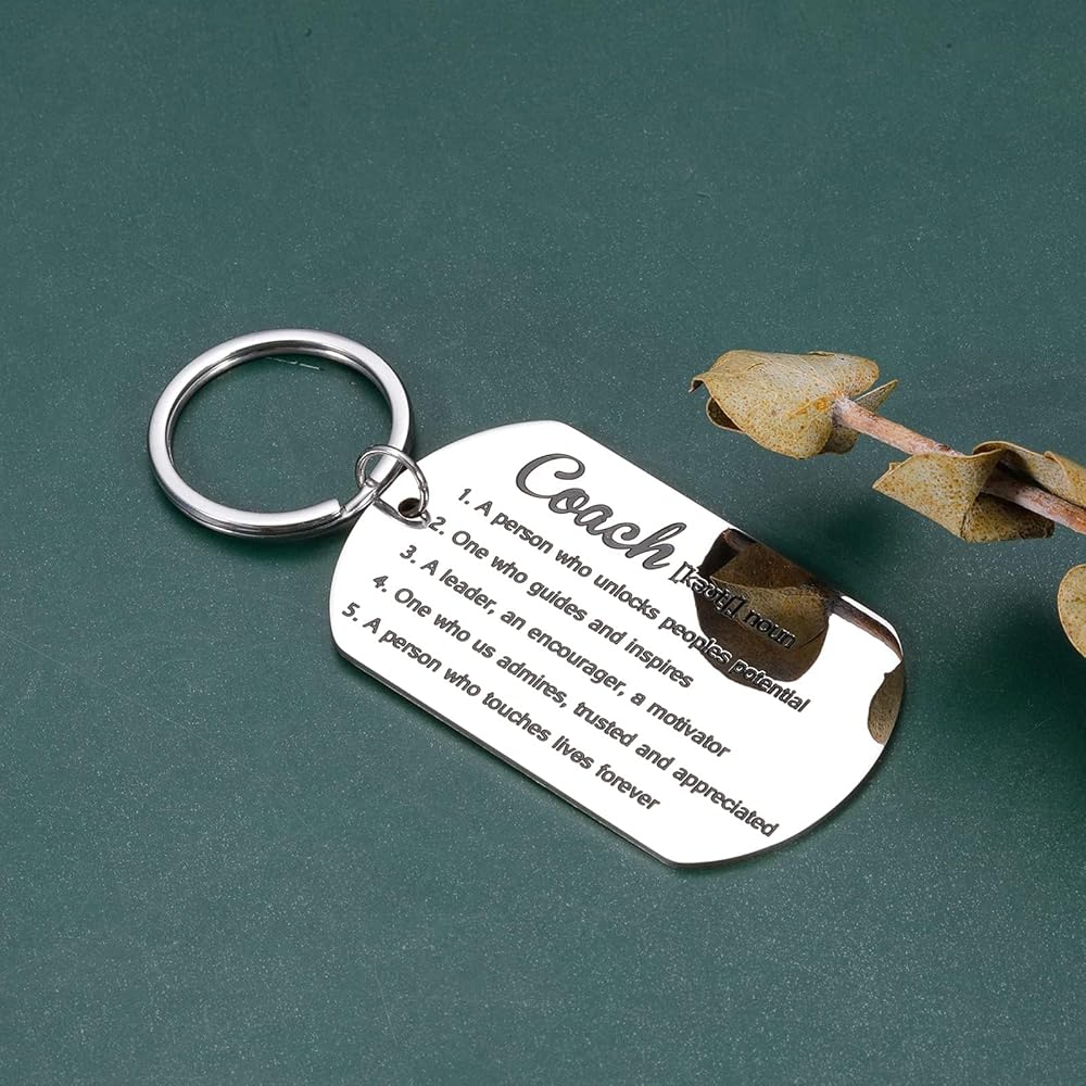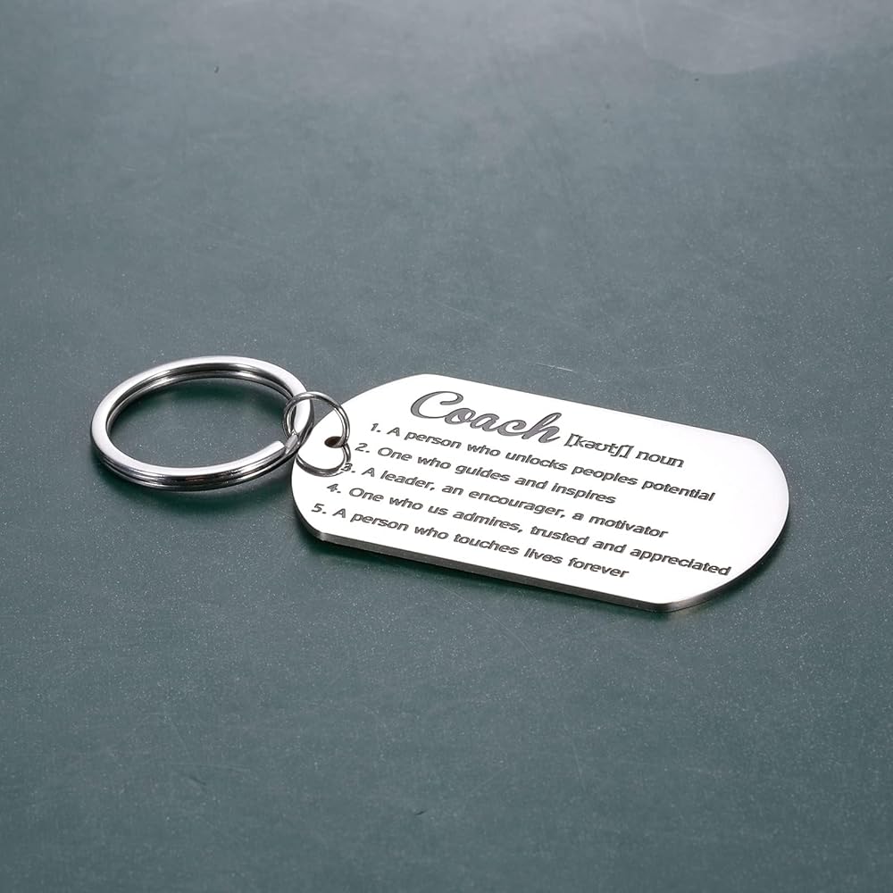 تصميم ممتاز وجودة متينة: مصنوع من الفولاذ المقاوم للصدأ عالي الجودة، مصقول للغاية بدون نتوءات، مقاوم للماء، مقاوم للعرق، ولن يصدأ أو يفقد بريقه. سلسلة المفاتيح جميلة ويمكن حملها بسهولة. إغلاق بخطاف وحلقة، يمنع المفاتيح من السقوط. سلسلة مفاتيح المدرب متينة للغاية لذا يمكنك تقديرها مدى الحياة.