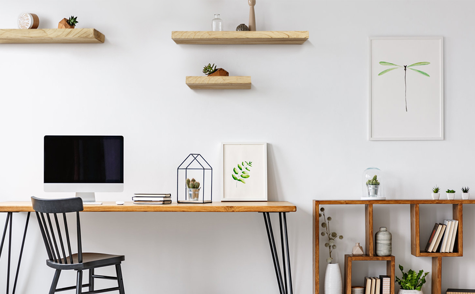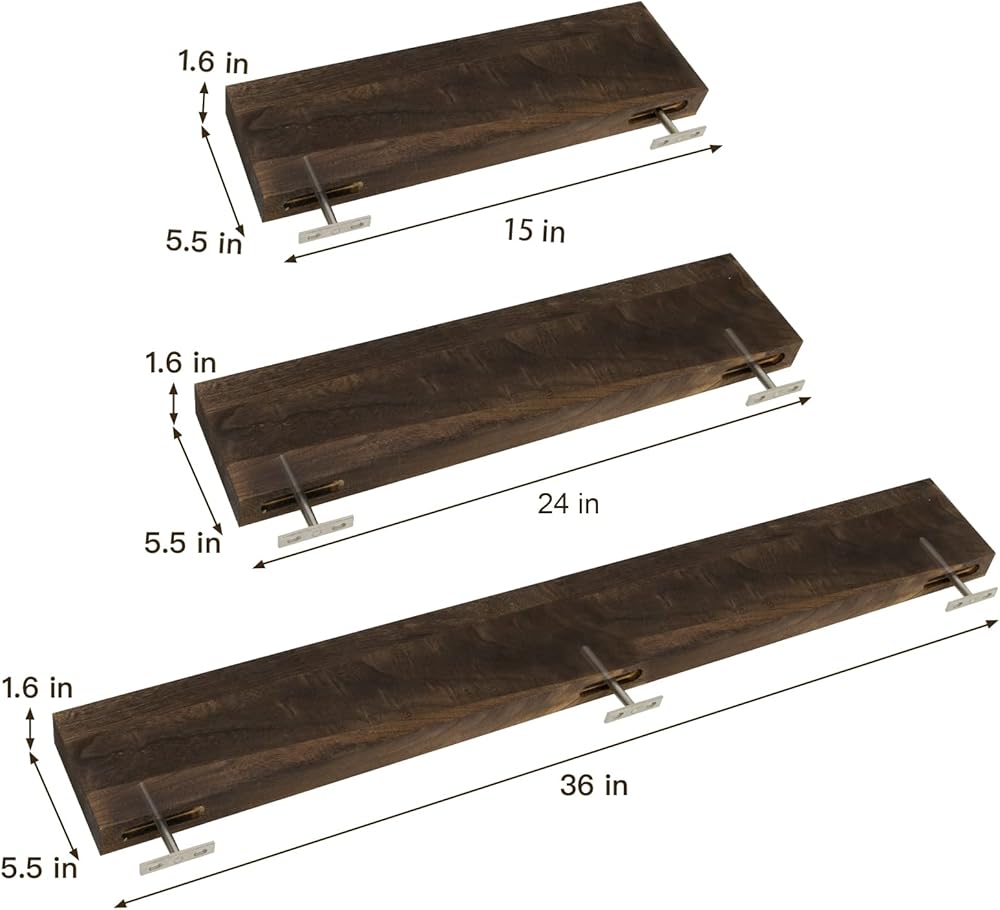 تركيب سهل - مجموعة من 2 رفوف عائمة تأتي مع دعامات مخفية مجلفنة من الفولاذ المقاوم للصدأ، ومسامير تبديل للجدار الجاف ودليل تعليمات بسيط. بمساعدة دليل التعليمات، يمكنك الحصول على أرفف جدارية خشبية مثالية في دقائق معدودة.