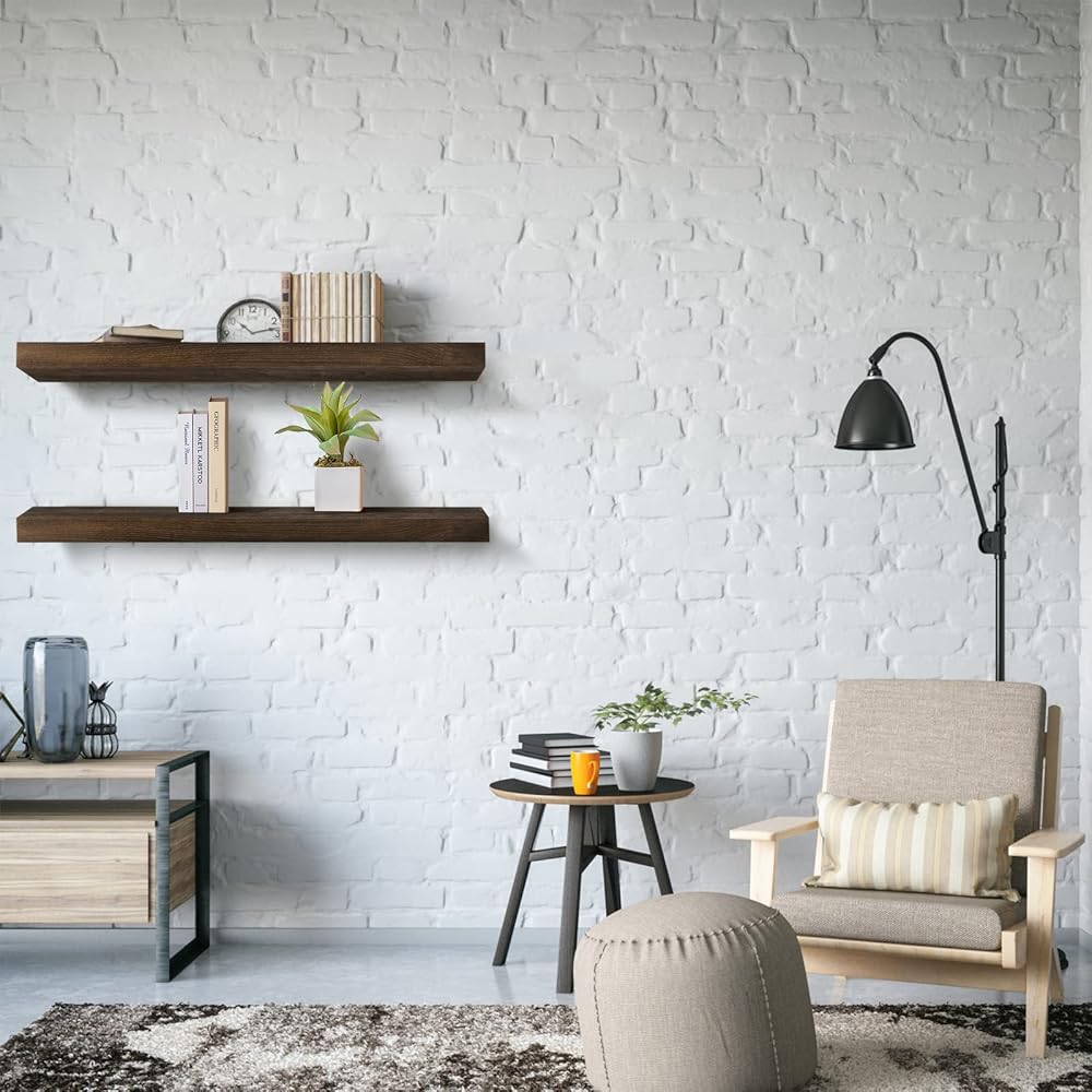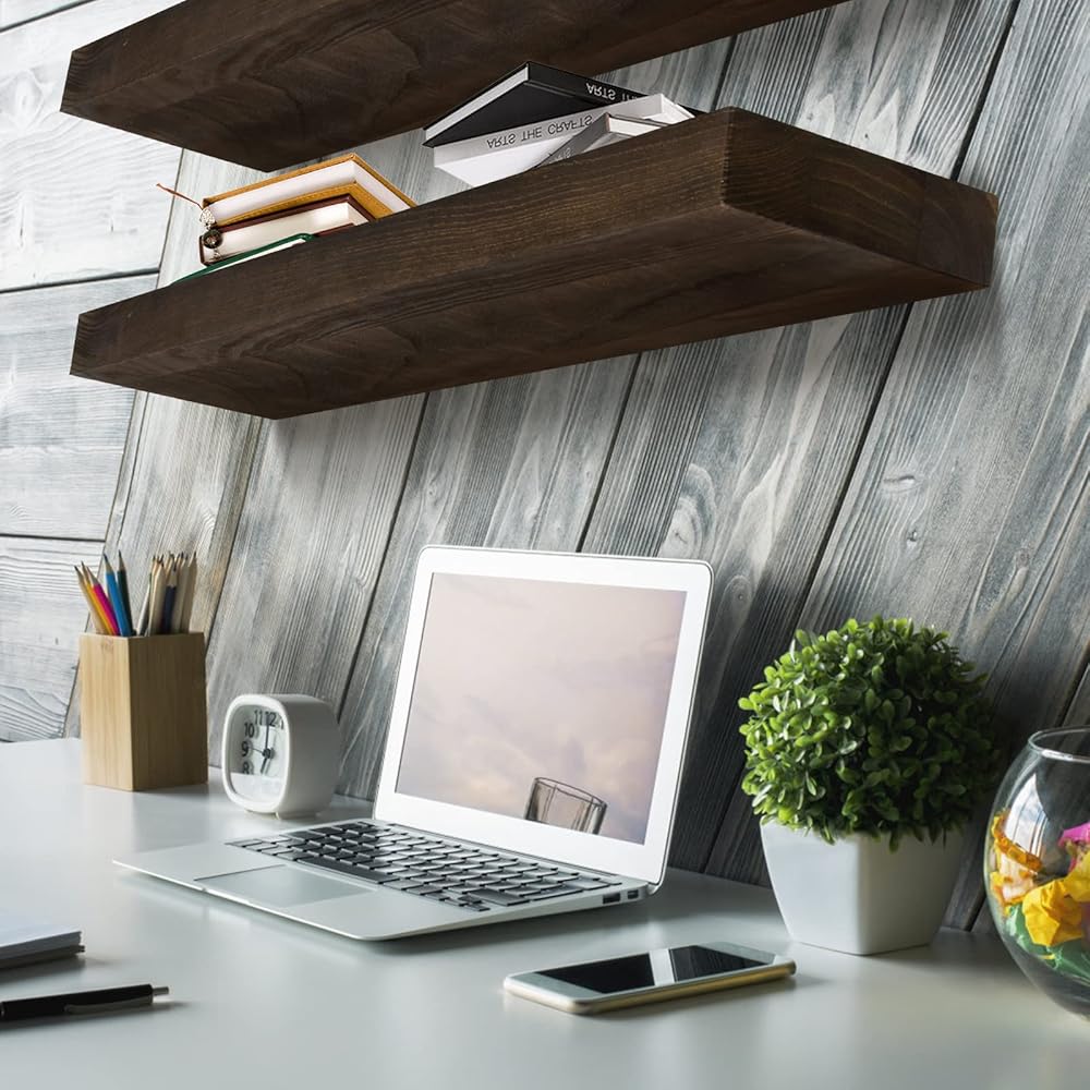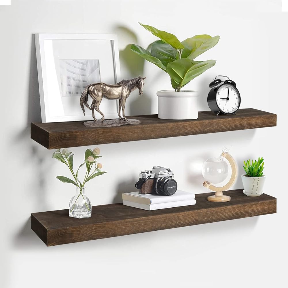 أرفف عائمة، مجموعة أرفف حائط من الخشب الصلب مكونة من 2، رف معلق مع أقواس غير مرئية 36 بوصة، أرفف حائط خشبية واسعة لديكور غرفة المعيشة وغرفة النوم والمطبخ والمكتب والمزرعة (الخشب الفوسكوس)