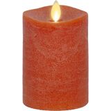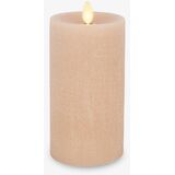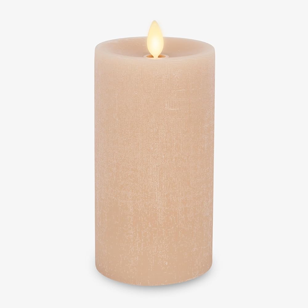 Highlights Luminara's patented Real Flame-Effect Moving Flame technology. Crafted from unscented 100% real wax, this textured pillar measures 3" in diameter and 4.5" in height.