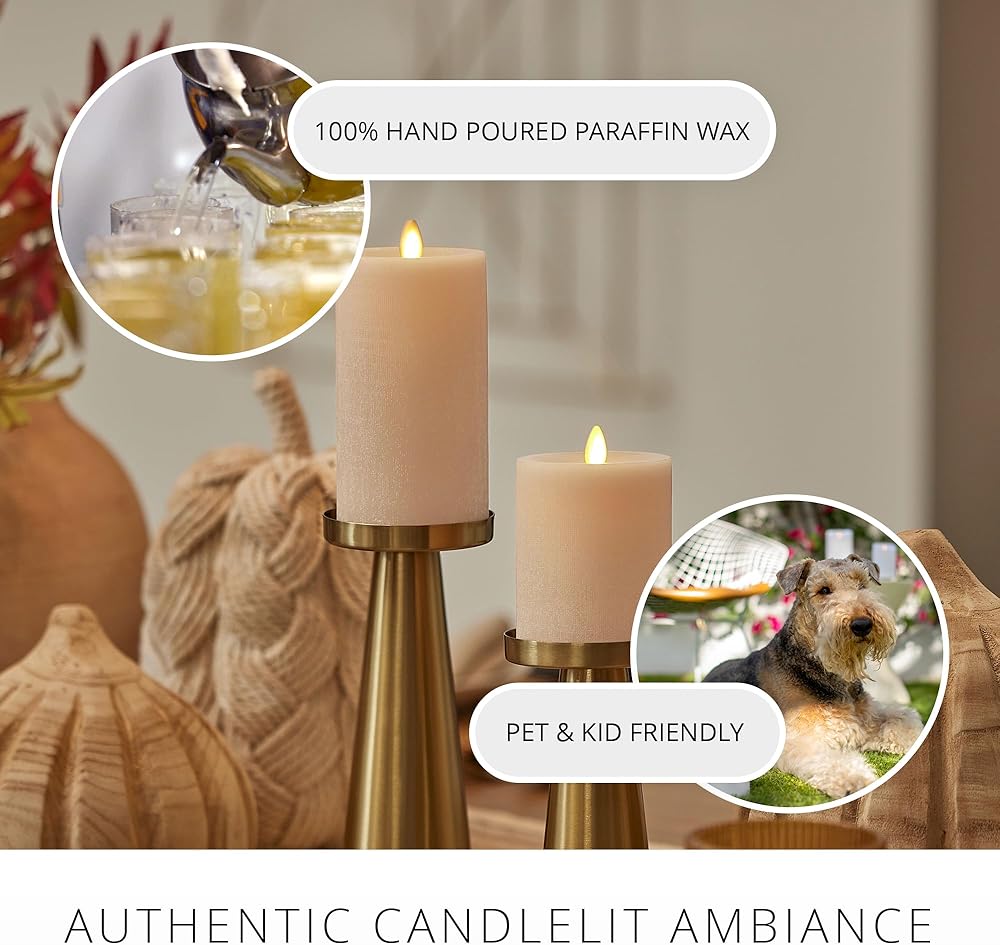 Safely illuminate any space with Luminara Flameless LED candles, designed for homes with children, pets, or those seeking a worry-free glow in areas like bookshelves and bedrooms.